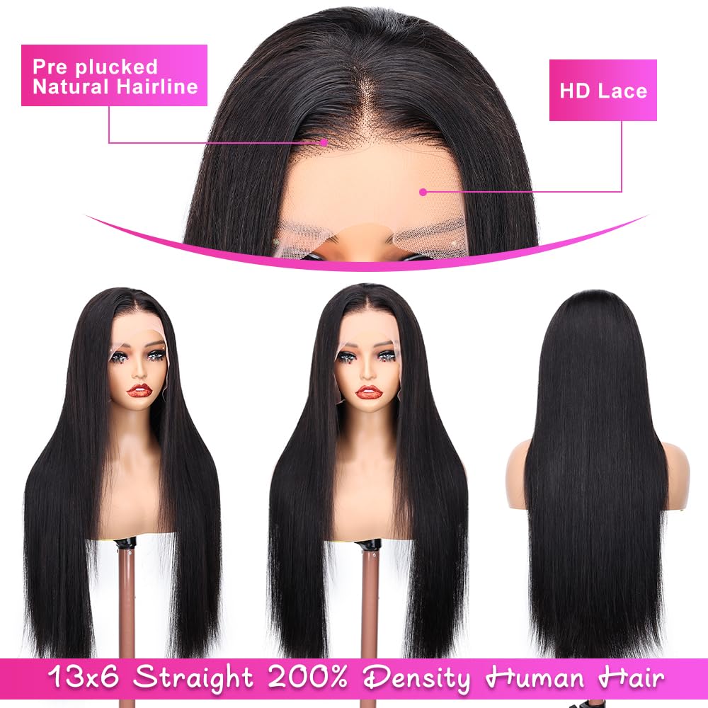 Fraud Blocker 13×6 HD Lace Front Wigs Straight Human Hair Wigs 200% Density Straight Lace Front Wigs Human Hair with Baby Hair Brazilian Virgin Human Hair Wigs for Women 28 Inch | Wigsretail44.com