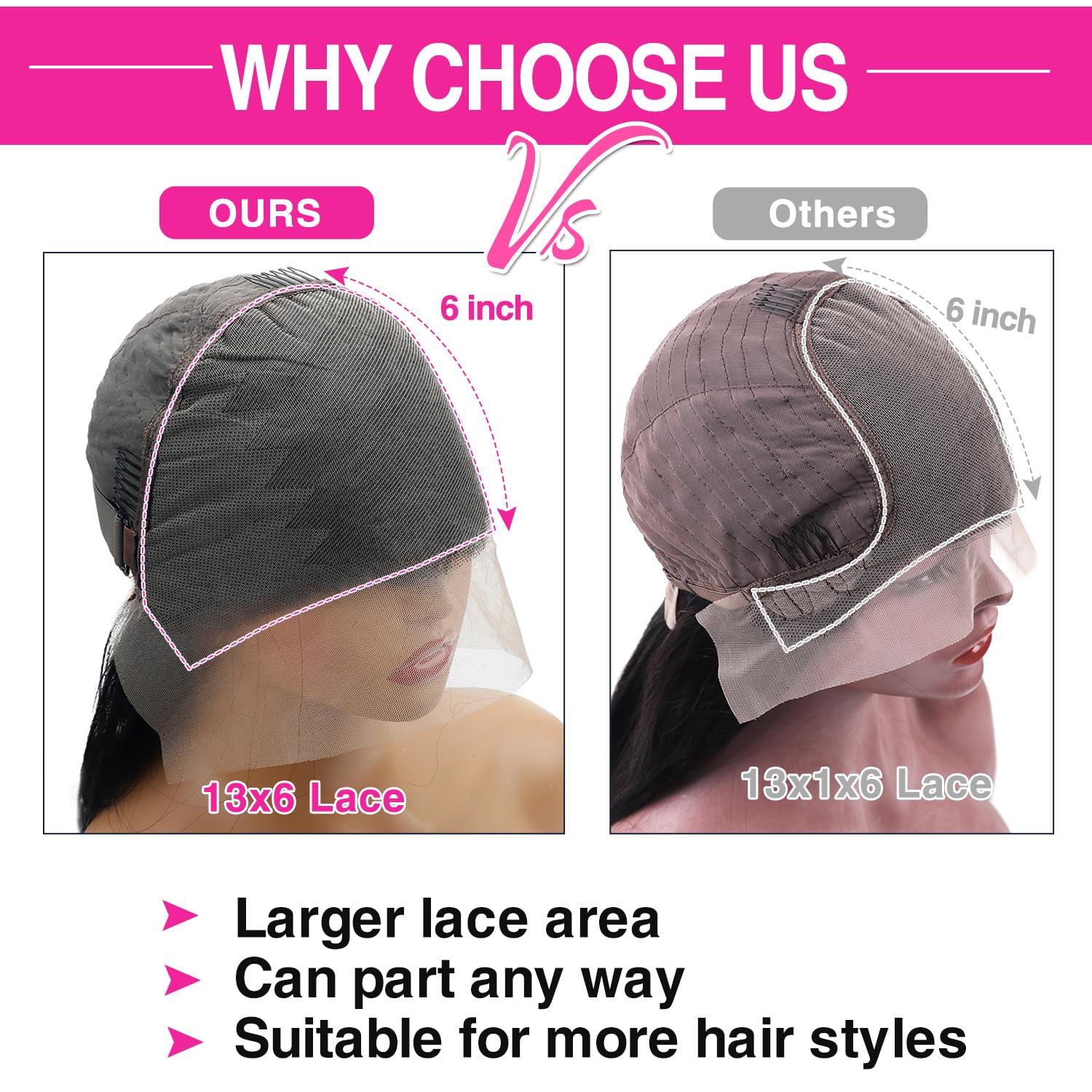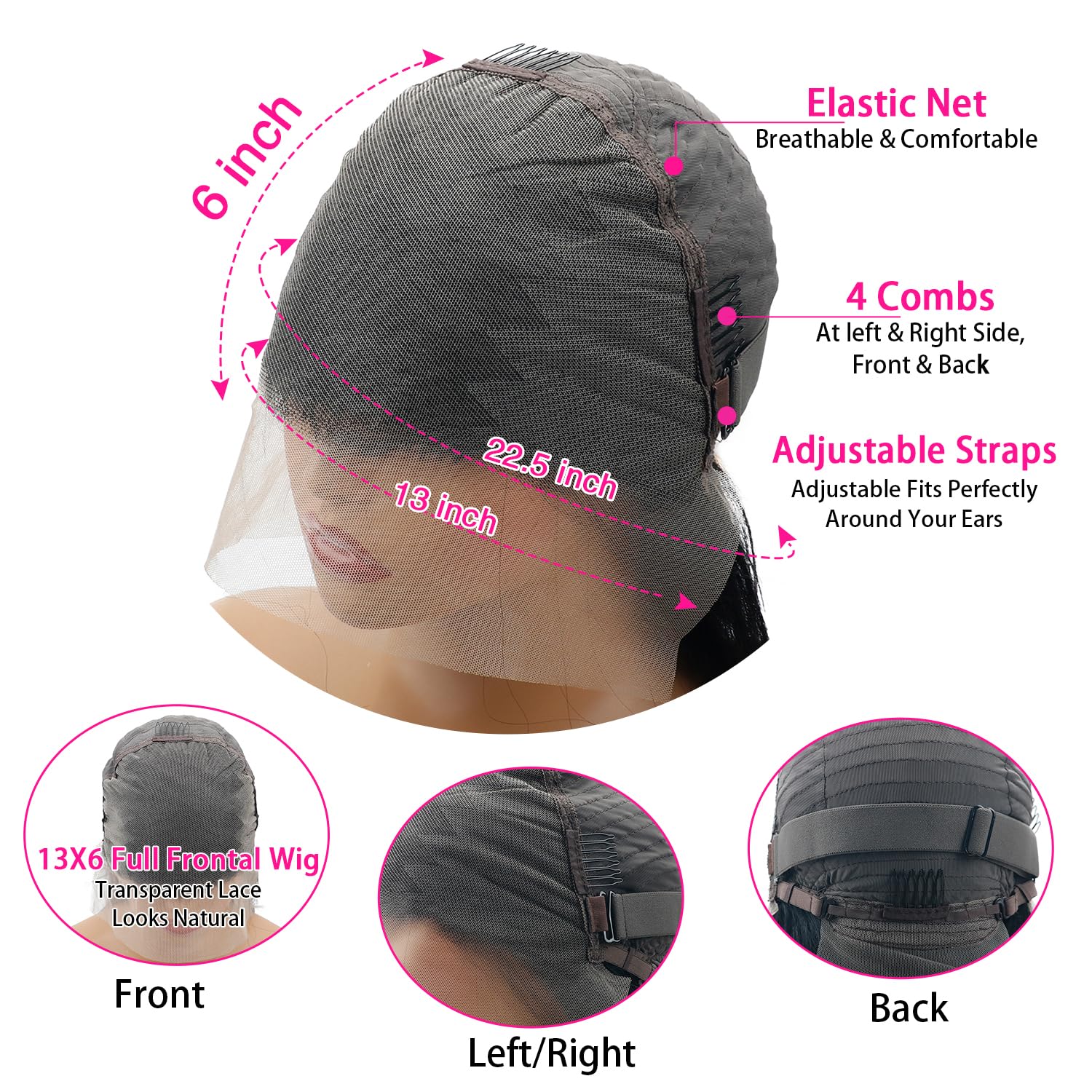 – Glueless cap with adjustable straps and combs