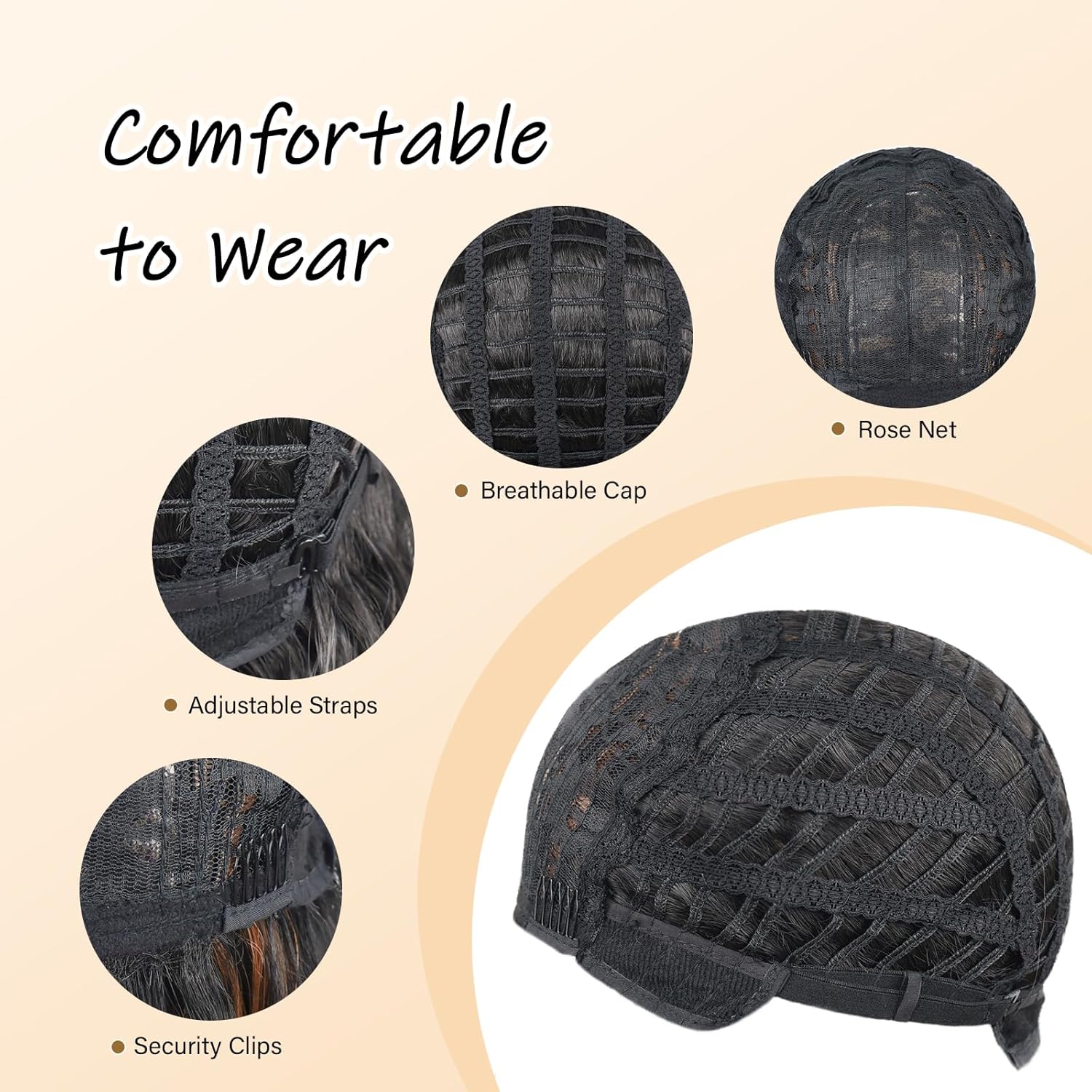 The 14 Inch Wavy Brown Mixed Black Wig with Bangs from Cielo Hair is a fantastic addition to any wig collection. The heat-resistant synthetic fiber feels soft and breathable, making it comfortable to wear all day long. The adjustable buckles and straps ensure a secure fit, while the pre-styled bangs can be easily trimmed to suit your style.