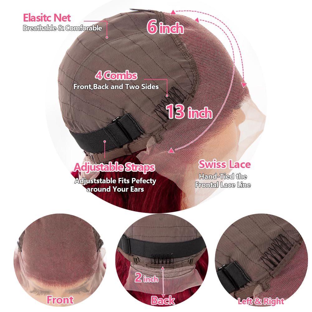 – Wig Type: Burgundy color, straight style, free part, glueless