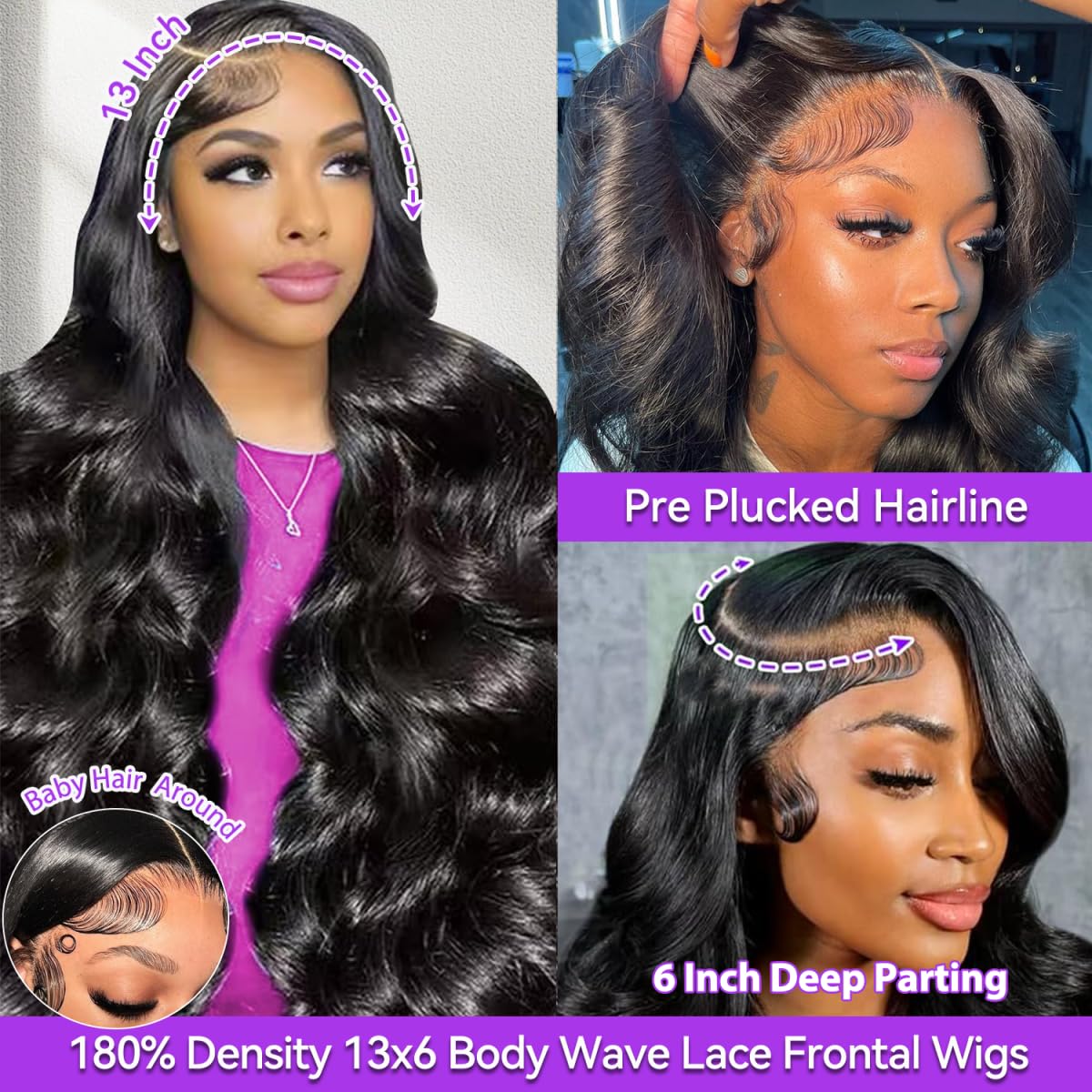 Fraud Blocker 28 Inch 13×6 Lace Front Wigs Human Hair Pre Plucked Body Wave HD Transparent Lace Frontal Wigs Human Hair 180 Density Glueless Wig with Baby Hair for Women | Wigsretail44.com