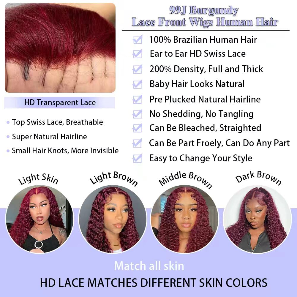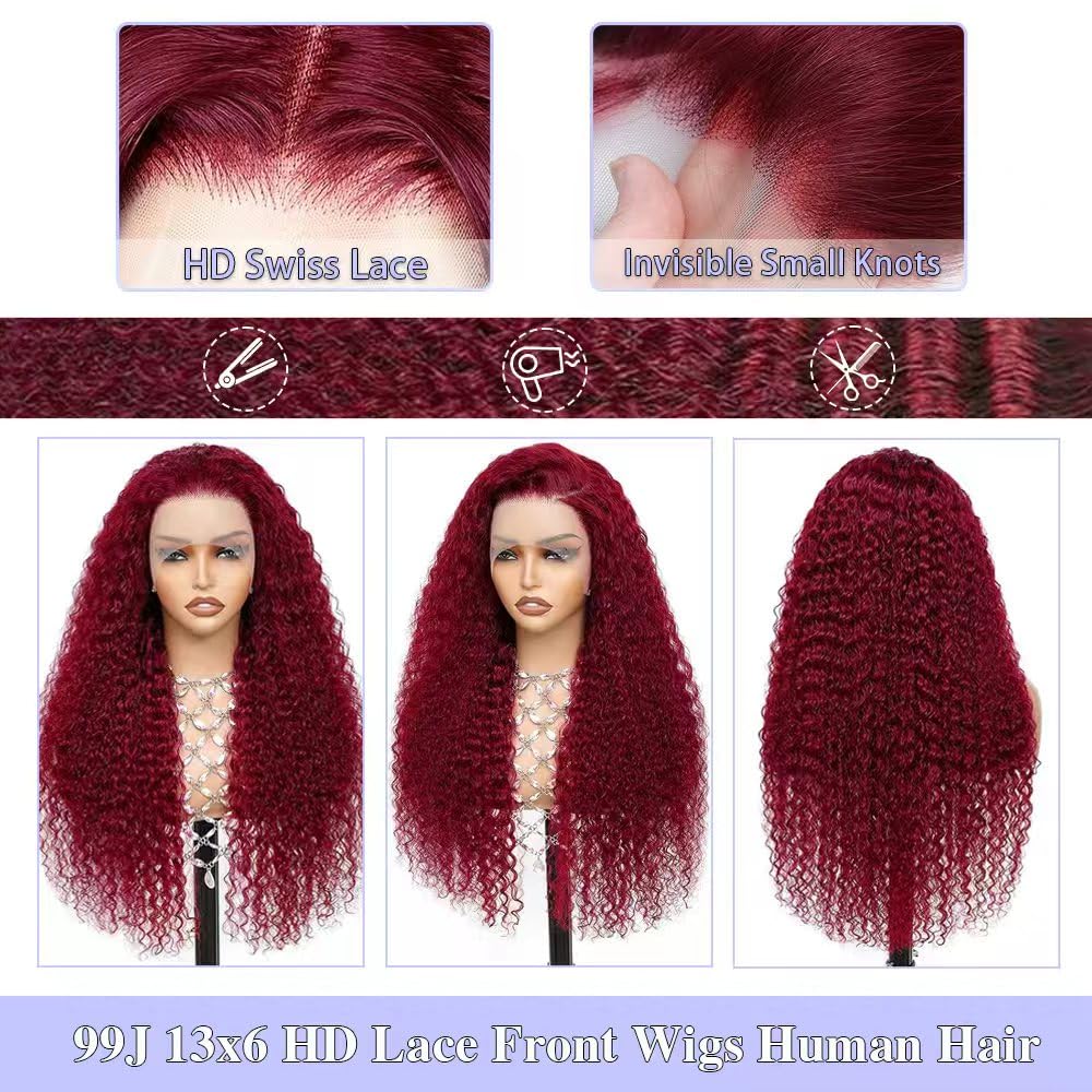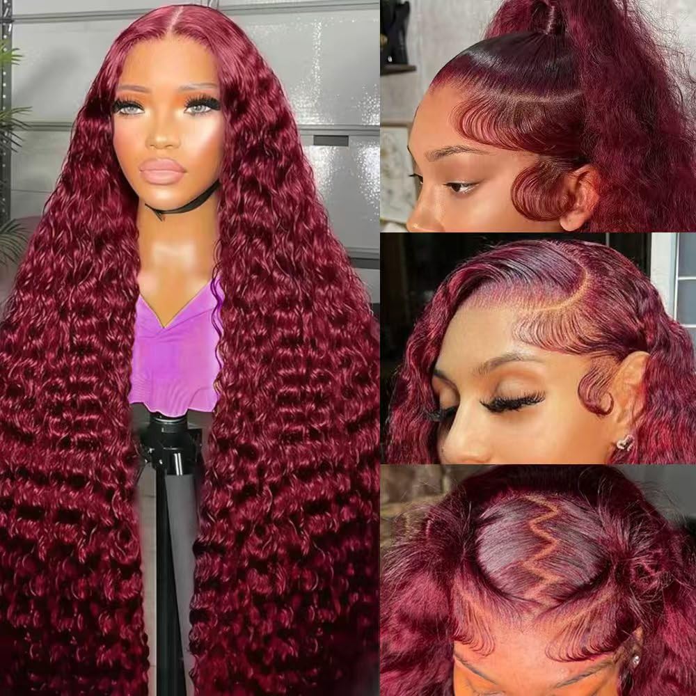 Fraud Blocker 30 Inch 99j Burgundy Deep Wave Lace Front Wigs Human Hair 99j 13×6 HD Lace Front Wigs Human Hair 200 Density Glueless Deep Wave Wig Pre Plucked Red Colored Curly Wig for Women | Wigsretail44.com