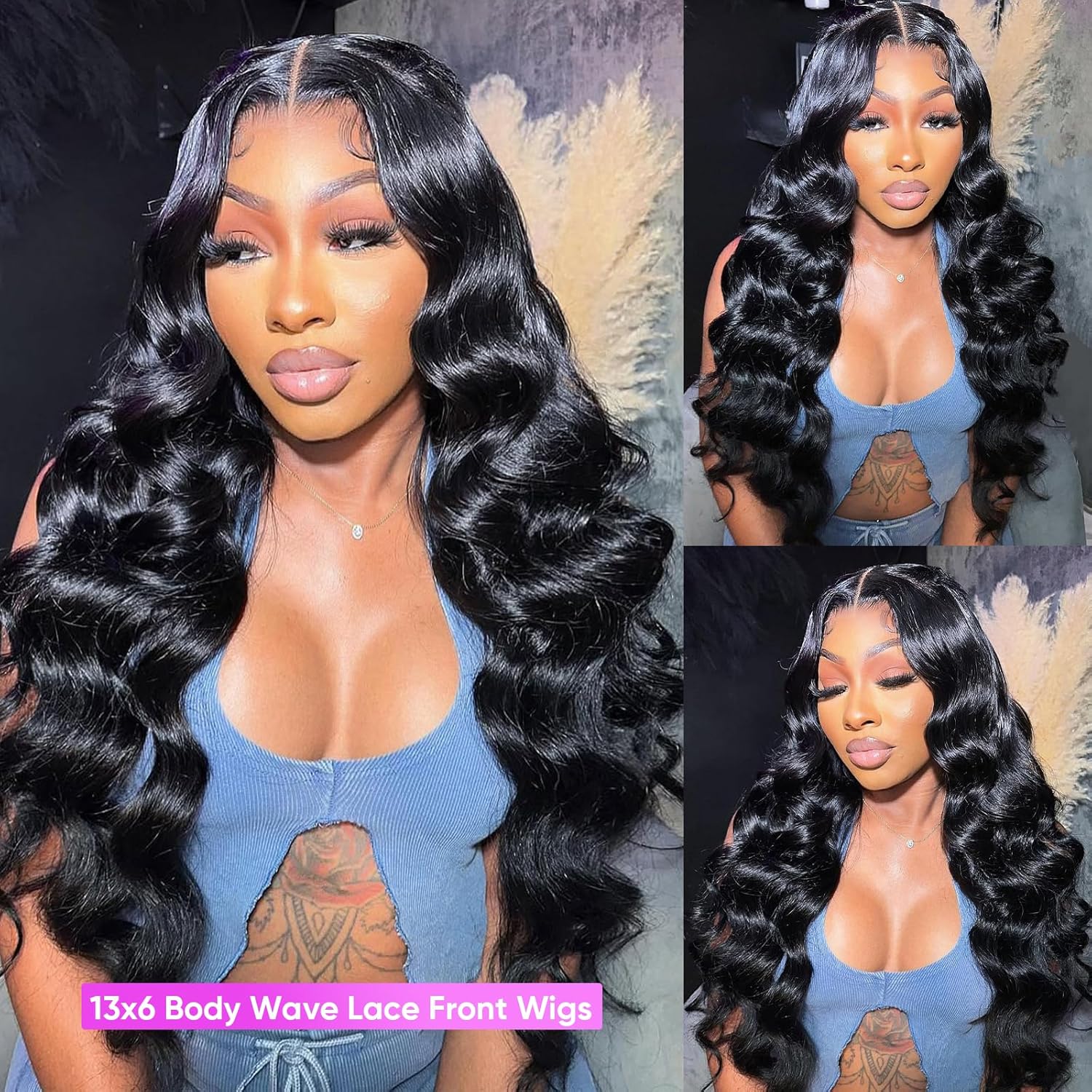 Fraud Blocker 30 Inch Body Wave Lace Front Wigs Human Hair Pre Plucked 13×6 HD Lace Frontal Human Hair Wig 200 Density Glueless Wig with Baby Hair 13×6 HD Lace Front Wigs for Women Natural Black Color | Wigsretail44.com