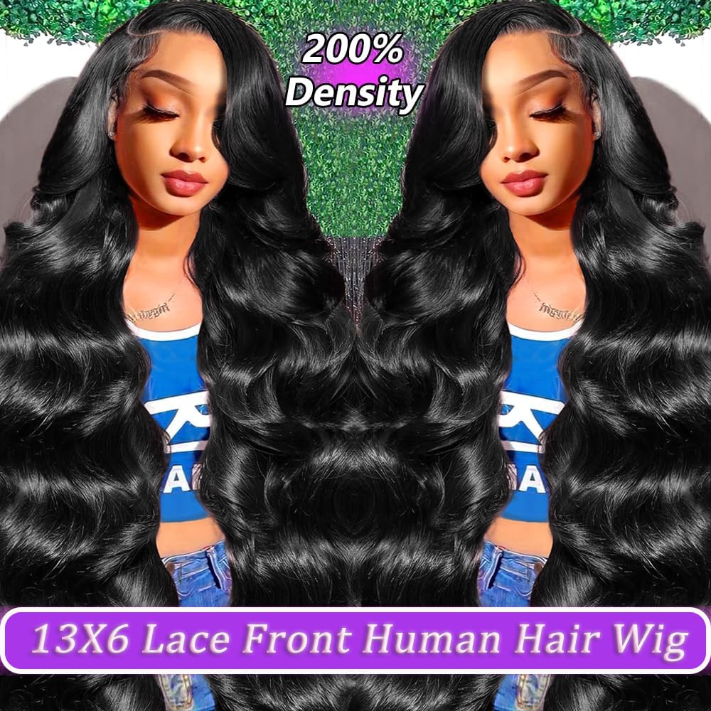 Fraud Blocker 30 Inch Body Wave Lace Front Wigs Human Hair Pre Plucked 13×6 HD Lace Frontal Wigs Real Human Hair 200 Density Glueless Wig with Baby Hair Body Wave Wigs for Black Women Natural Black | Wigsretail44.com