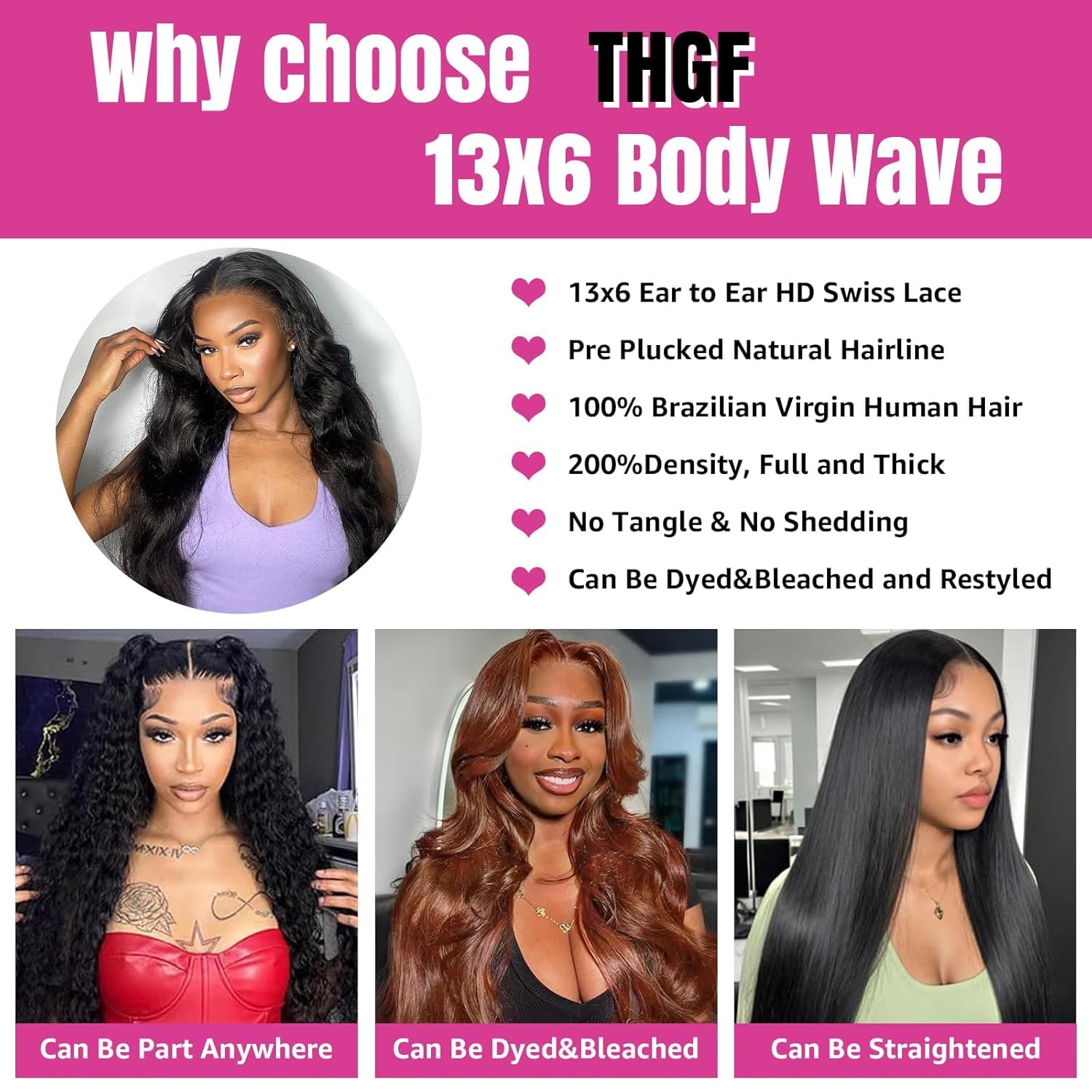 30 Inch Body Wave Lace Front Wigs Human Hair Wig for Women 13×6 HD Lace Front Wigs 200 Density Glueless Wig Pre Plucked with Baby Hair