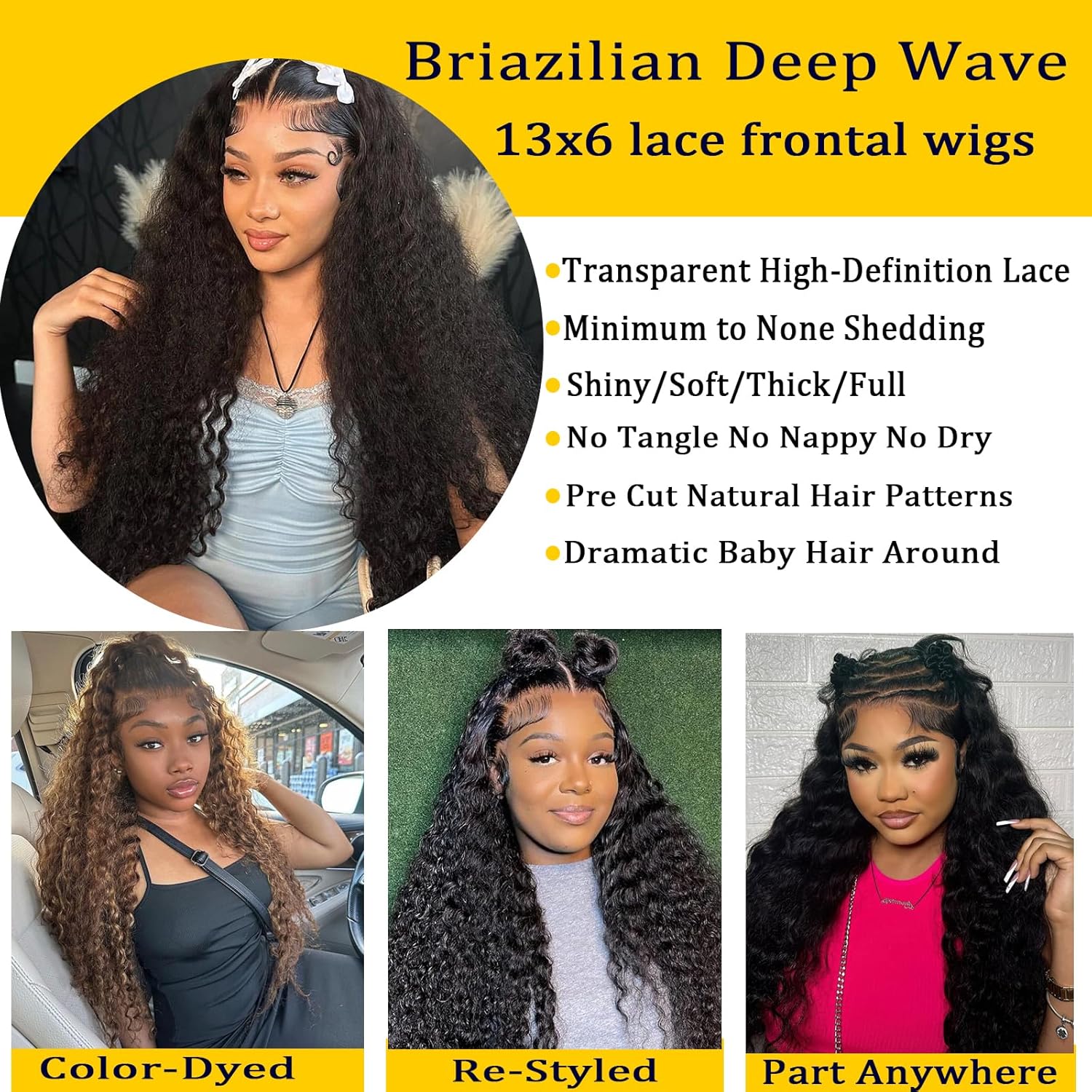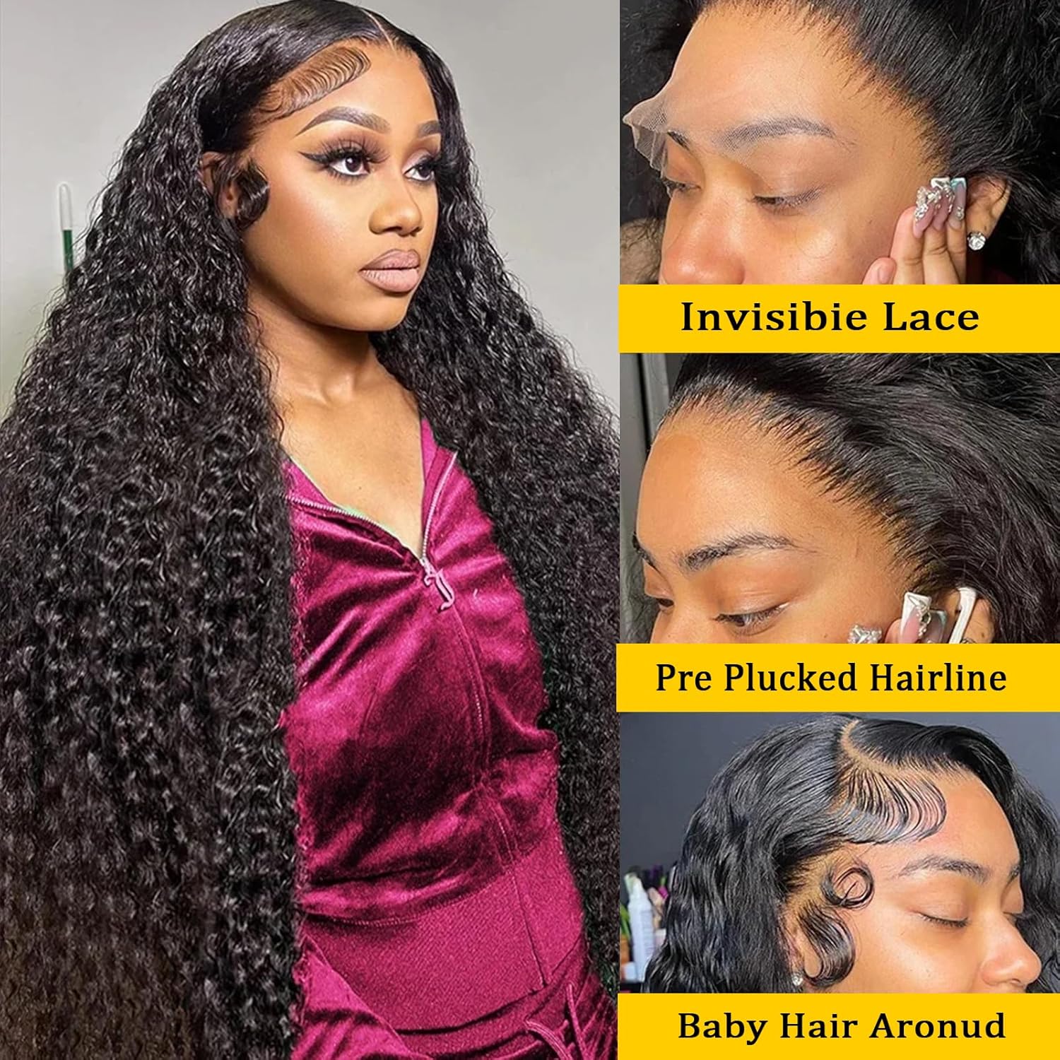Fraud Blocker 30 Inch Deep Wave Lace Front Wigs Human Hair 200% Density 13X6 HD Transparent Deep Curly Wigs 100% Real Human Hair Natural Color | Wigsretail44.com