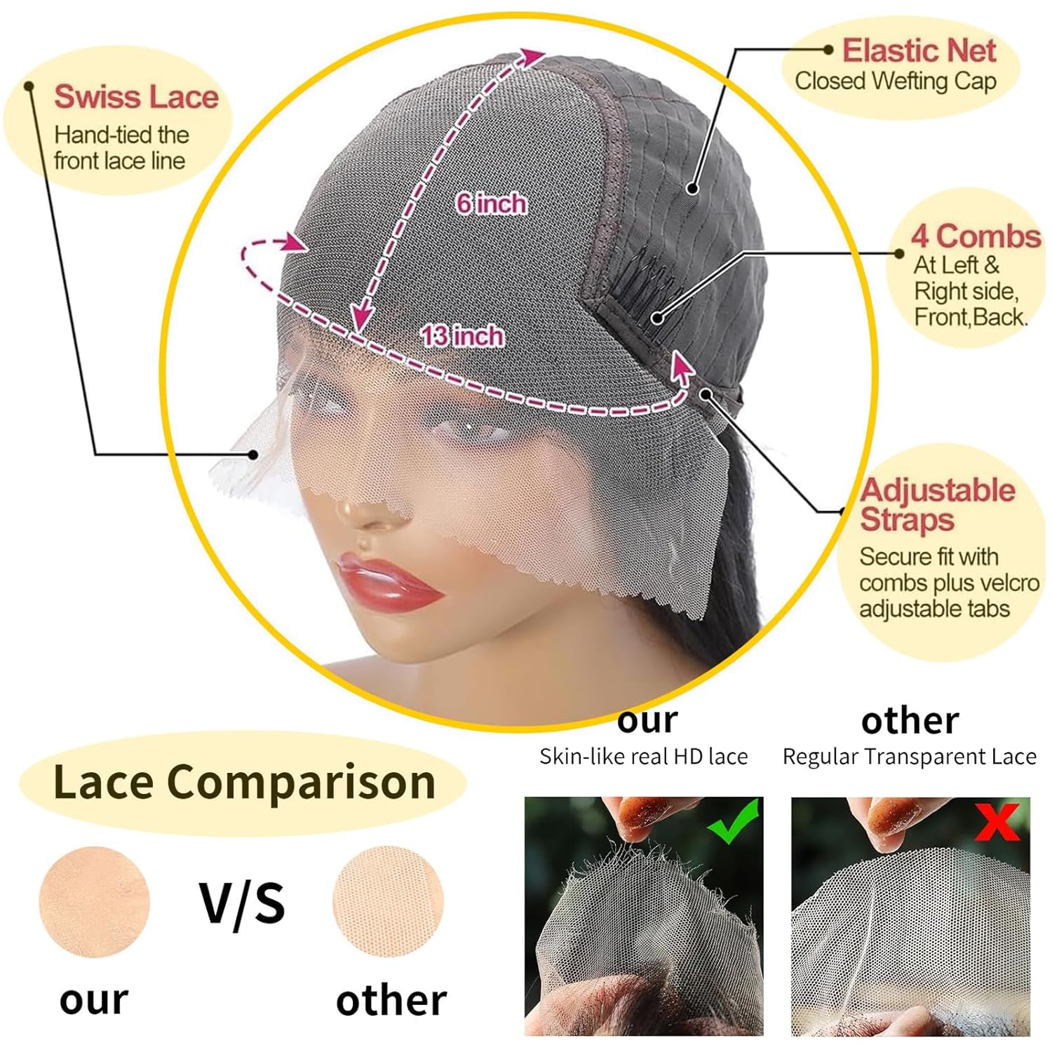 30 Inch Deep Wave Lace Front Wigs Human Hair 200% Density 13X6 HD Transparent Deep Curly Wigs 100% Real Human Hair Natural Color