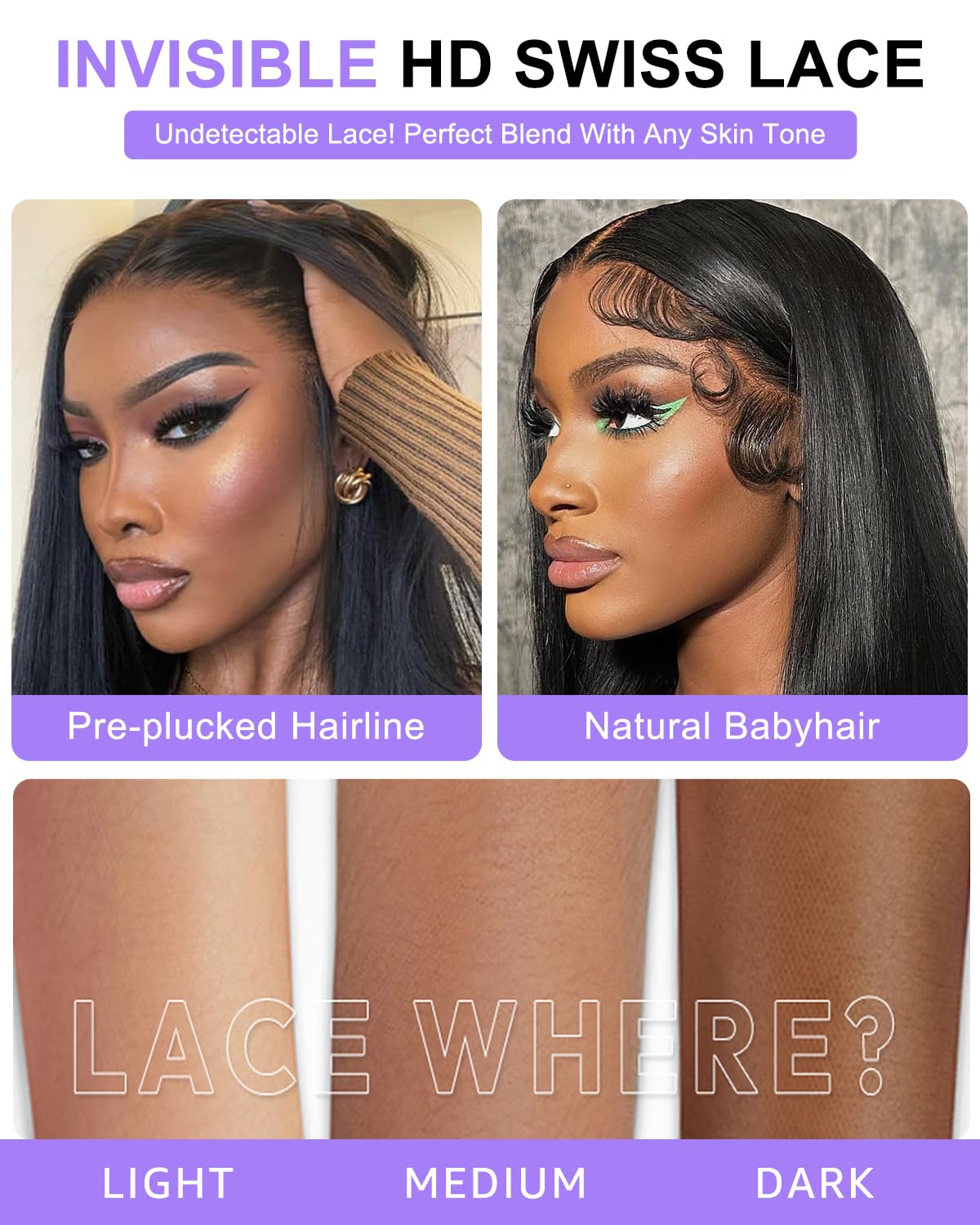 30 Inch Straight Wigs Human Hair 13×6 Lace Front Wigs Human Hair Pre Plucked 200 Density HD Transparent Lace Frontal Glueless Wig for Women with Baby Hair