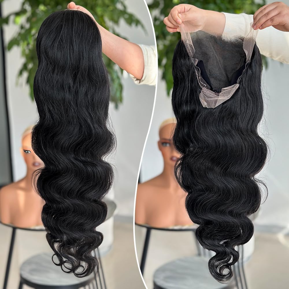 - 100% Unprocessed Brazilian Virgin Body Wave Wigs Human Hair for a soft, natural look.