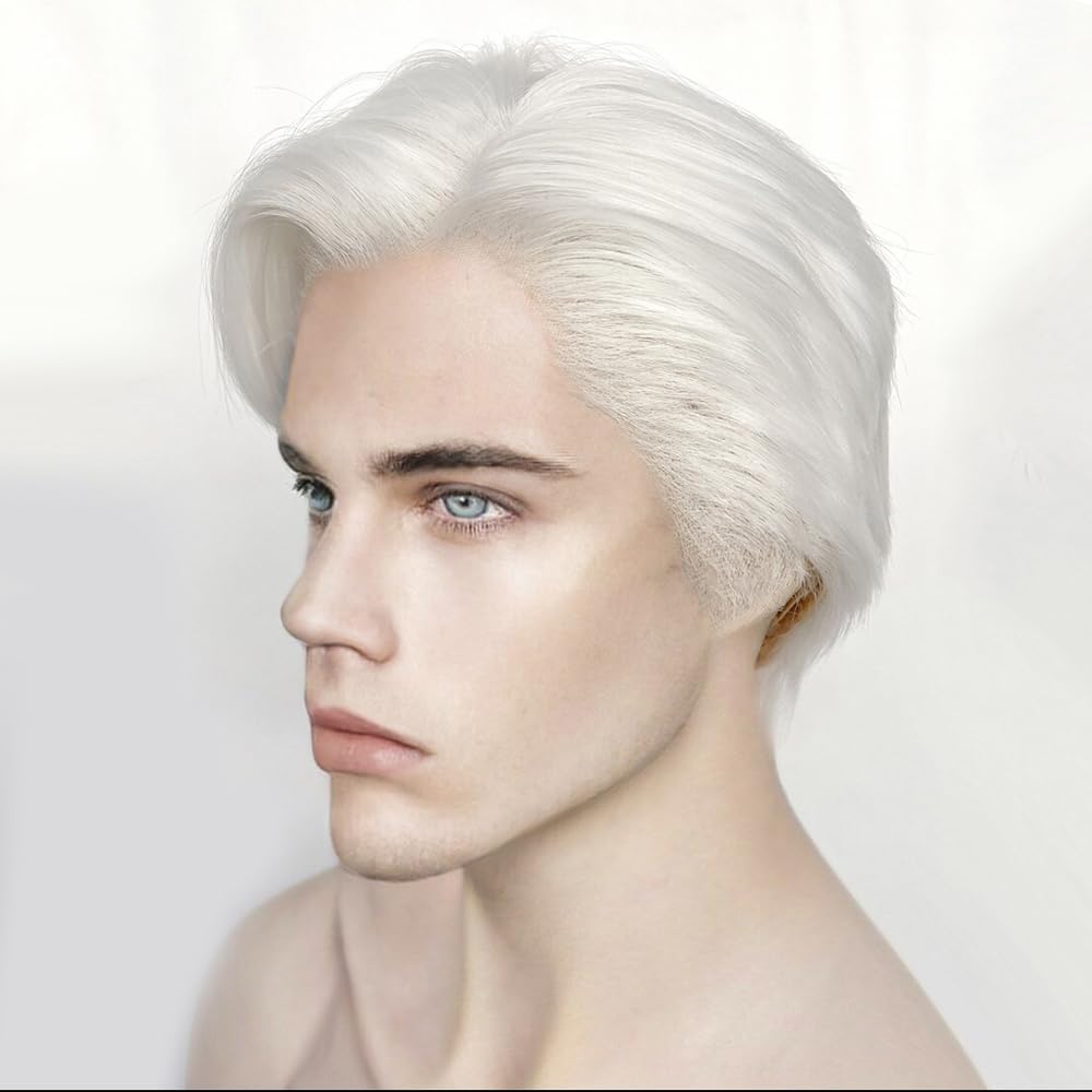 Get the Best Look with the White Grey 60# Boy Wigs Human Hair Brazilian Remy Natural Wavy Lace Front Wig!