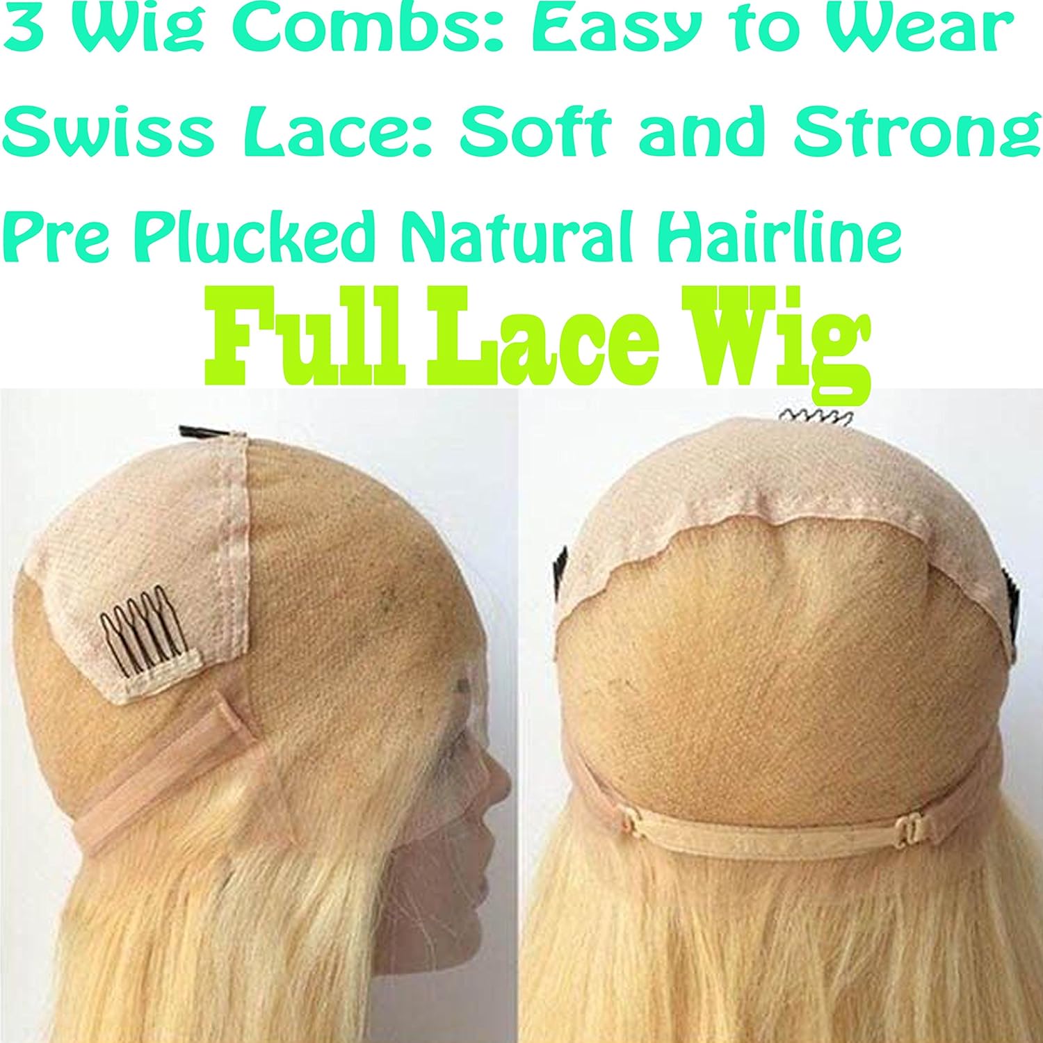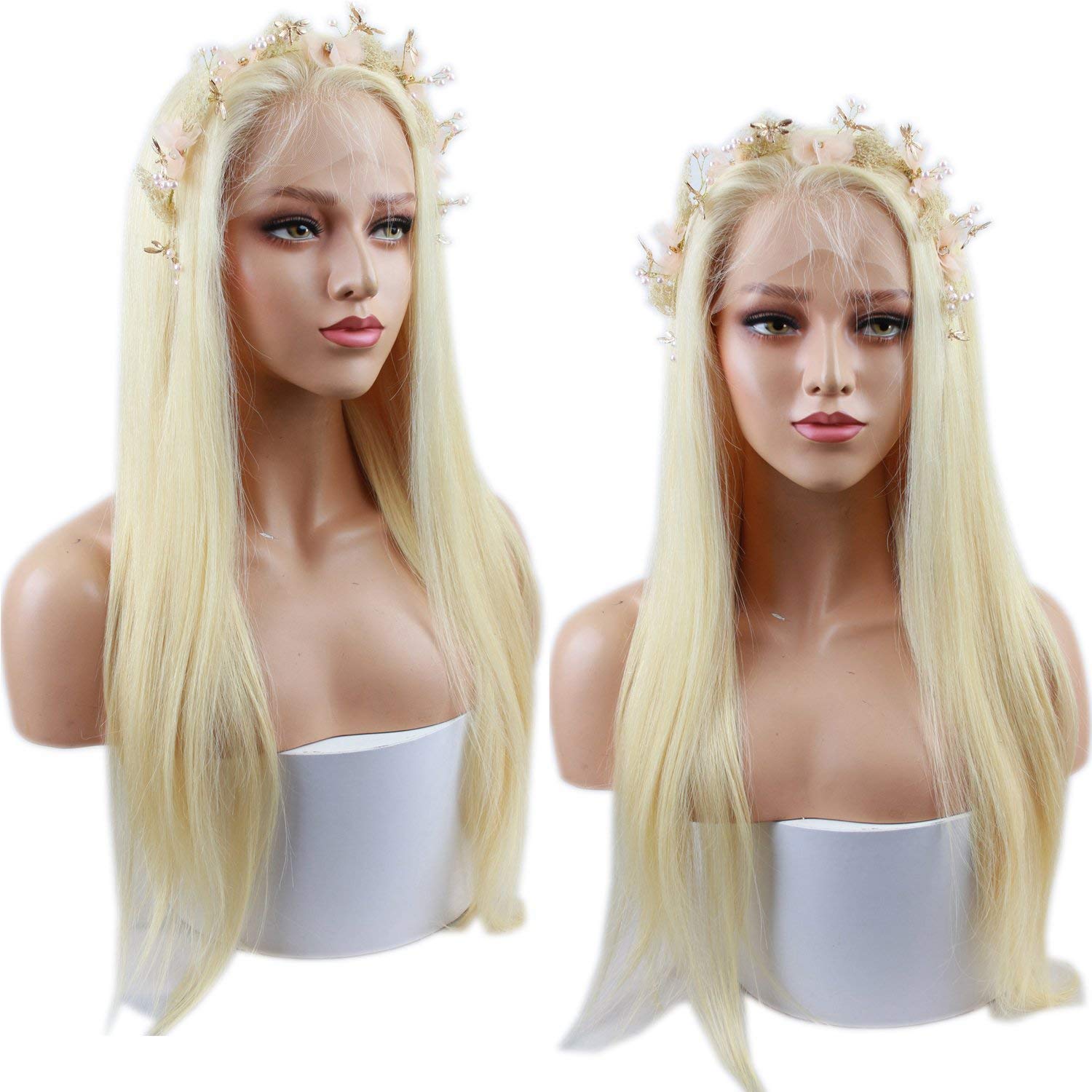 Fraud Blocker #613 Blonde Color Brazilian Virgin Remy Human Hair Glueless Pre Plucked Bleached Knots Silky Straight Full Lace Wigs with Baby Hair for Women | Wigsretail44.com