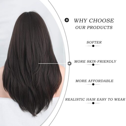 7JHH WIGS Long Natural Black Wig with Bangs Straight Wigs for Women,Heat Resistant Layered Synthetic Wigs for Daily Use