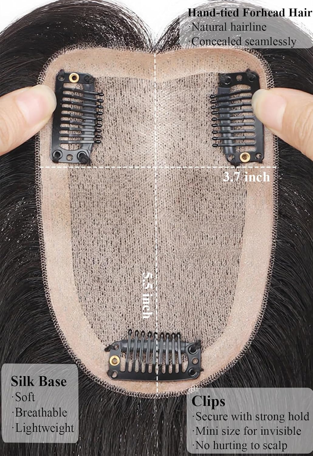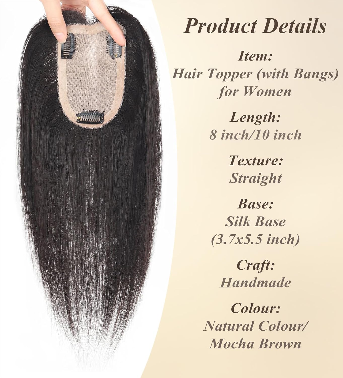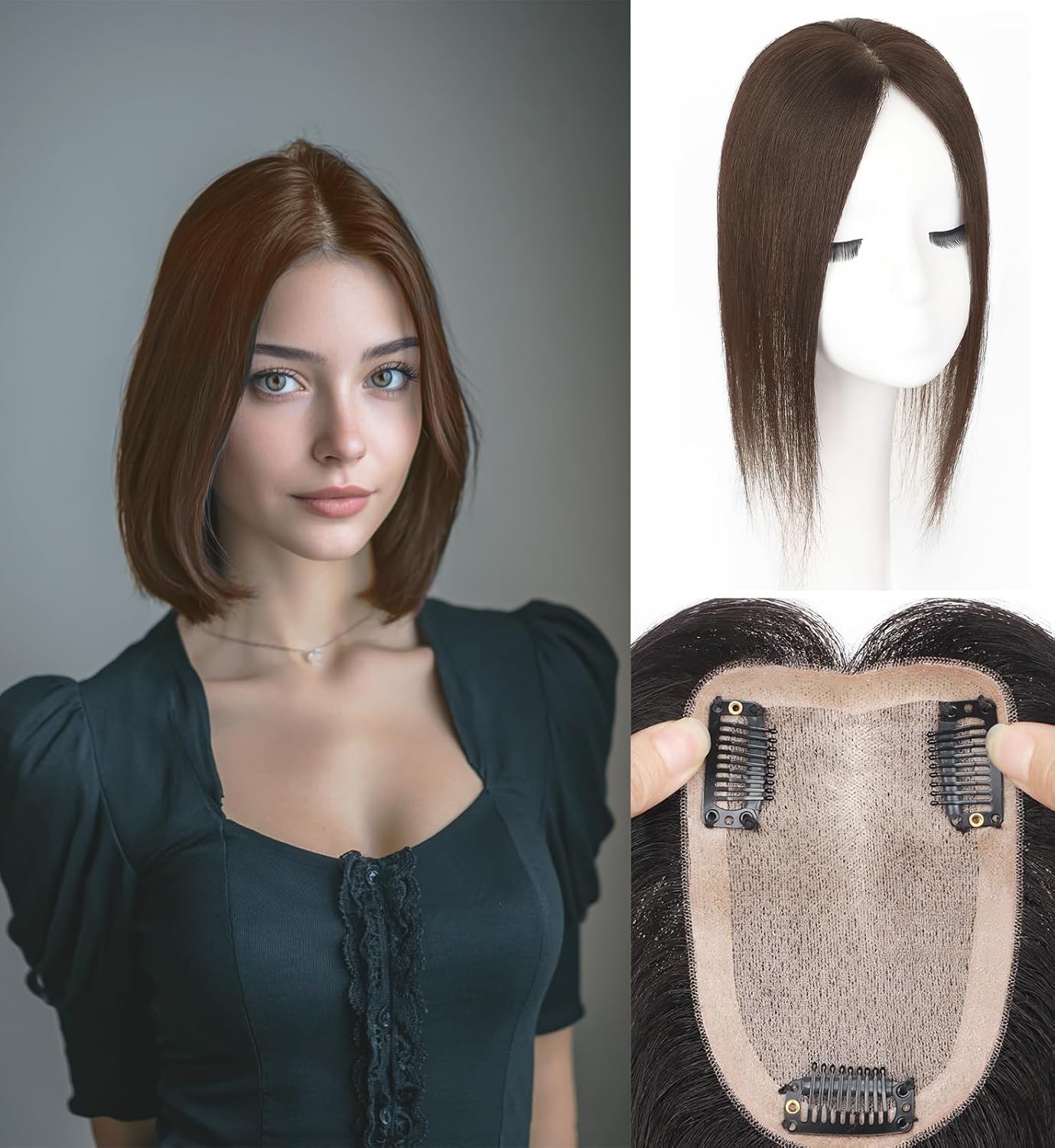 Fraud Blocker 8″ Short Hair Toppers for Women No Bangs Clip in Top Hairpieces,3.1″x5.5″ Free Parting Silk Base Human Hair Topper Hairpieces for Women with Thinning Hairs Mocha Brown | Wigsretail44.com