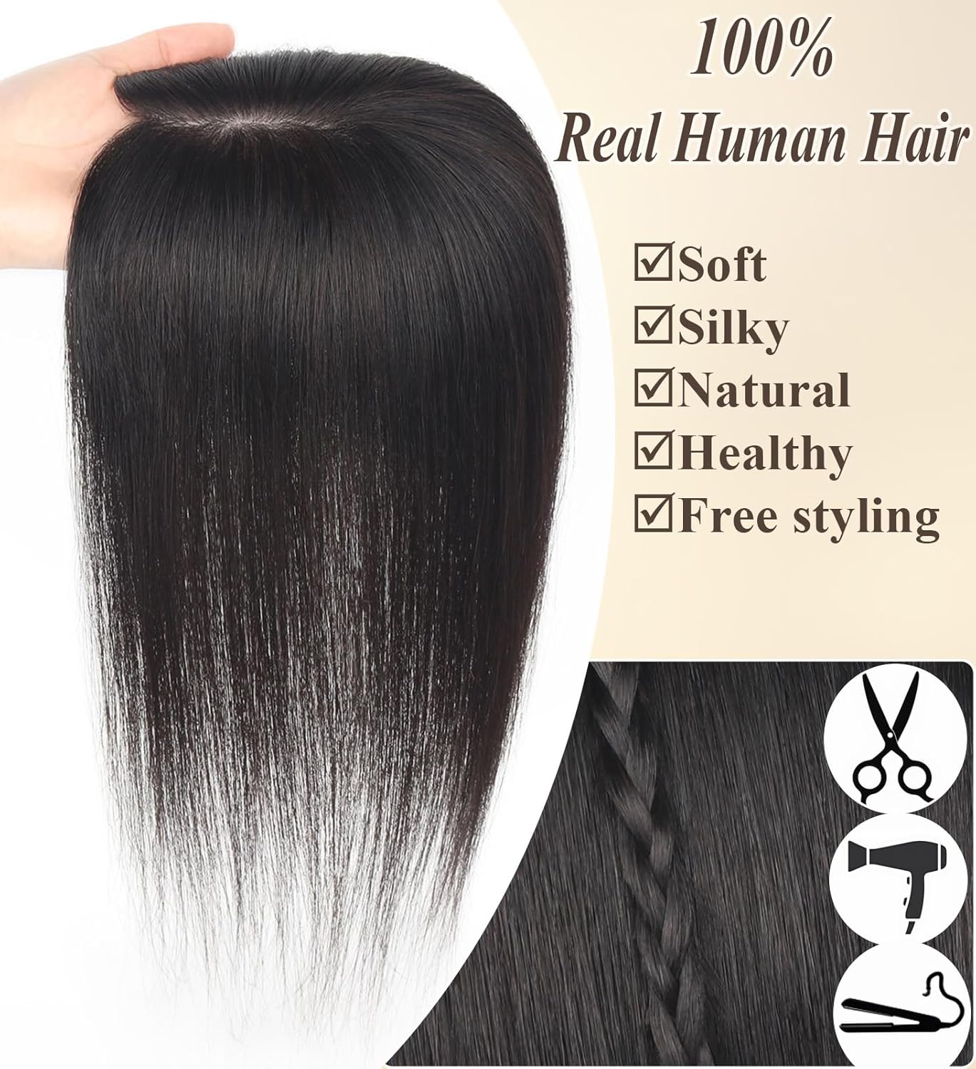 8″ Short Hair Toppers for Women No Bangs Clip in Top Hairpieces,3.1″x5.5″ Free Parting Silk Base Human Hair Topper Hairpieces for Women with Thinning Hairs Mocha Brown
