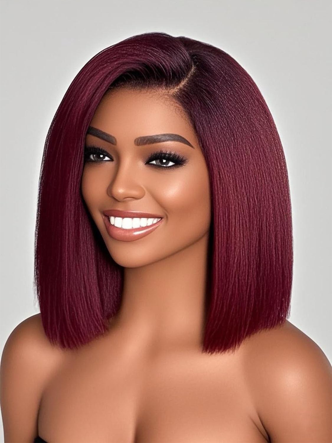 The 99J Burgundy short kinky straight wig by ANONLYLUX is perfect for anyone looking for a luxurious and versatile wig that is easy to install and maintain. Whether you’re a beginner or a seasoned wig wearer, this wig is sure to impress with its quality and style.