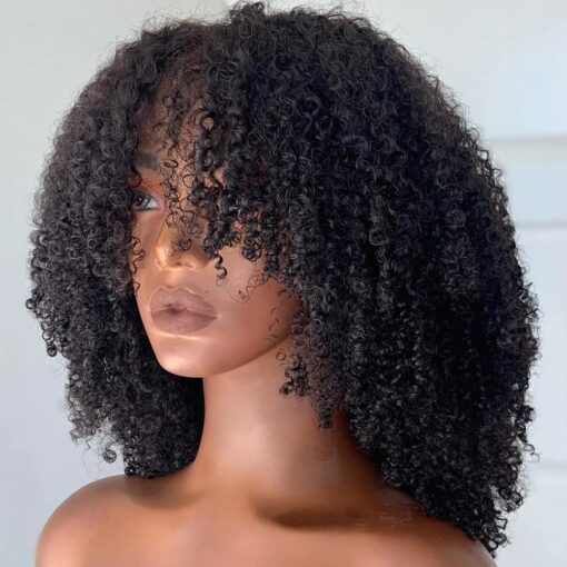 The Afro Kinky Curly Human Hair Wig with Bangs is ideal for anyone looking to add volume and texture to their curly hair. Whether you have naturally curly hair or want to try a new look, this wig offers a realistic and easy-to-wear option that will enhance your style effortlessly.