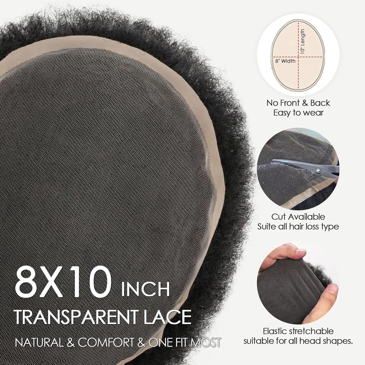 Fraud Blocker Afro Toupee 4MM Tight Curly Hair for Black Men, 100% Human Hair Repalcement System for Men 8x10inch Breathable Transparent Lace Base Hairpiece Arican American Wigs(4MM, 1B# Natural Black) | Wigsretail44.com