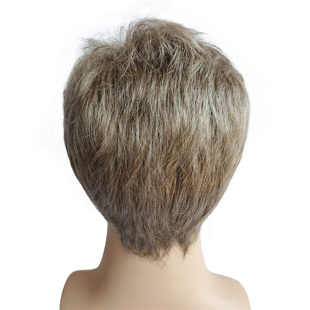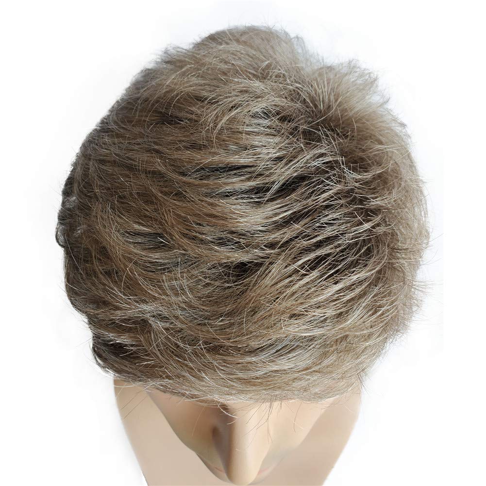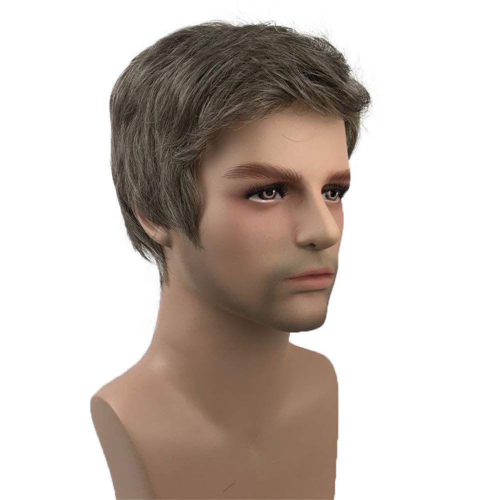 Aimole Mens Wigs Short Straight Hair Brown mix Sliver Natural Synthetic Full Wig