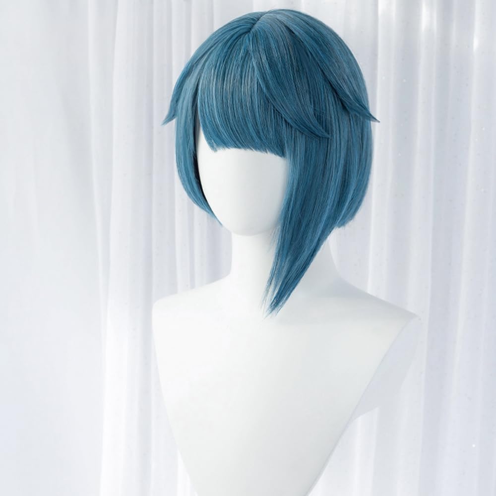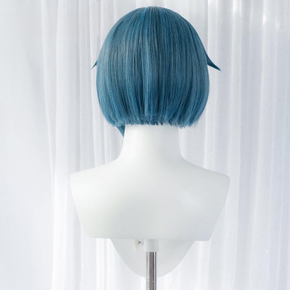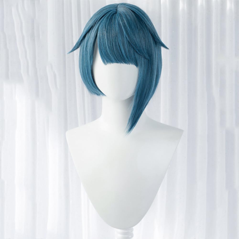 Anime Cosplay Wig Women Short Hair with Bangs Colorful Game Role Playing Synthetic Fiber Wig for Fancy Costume (Blue Gray)