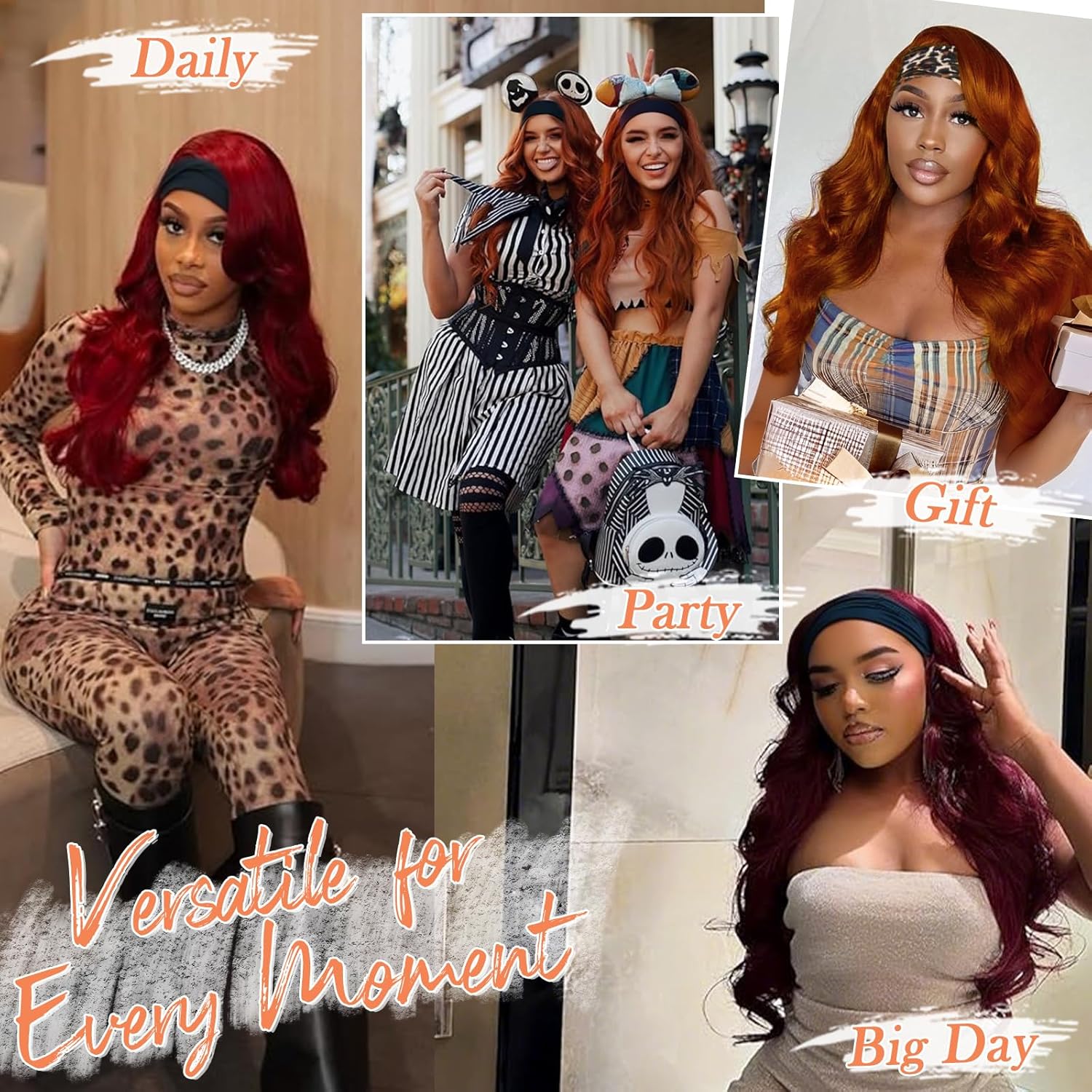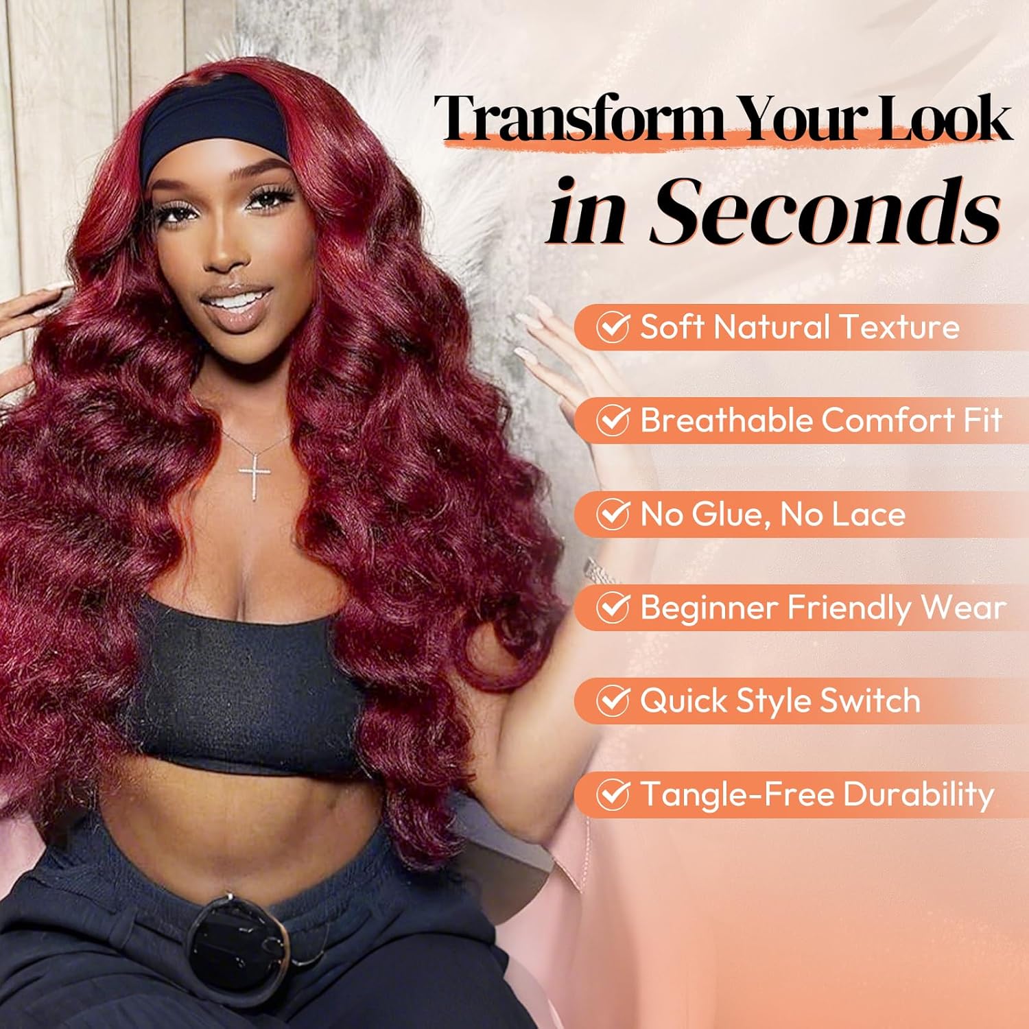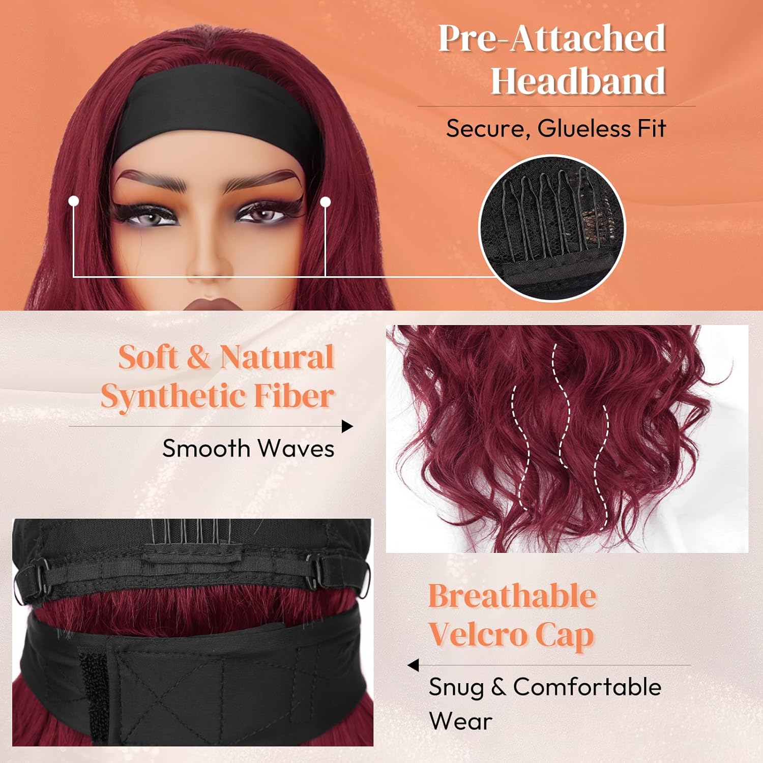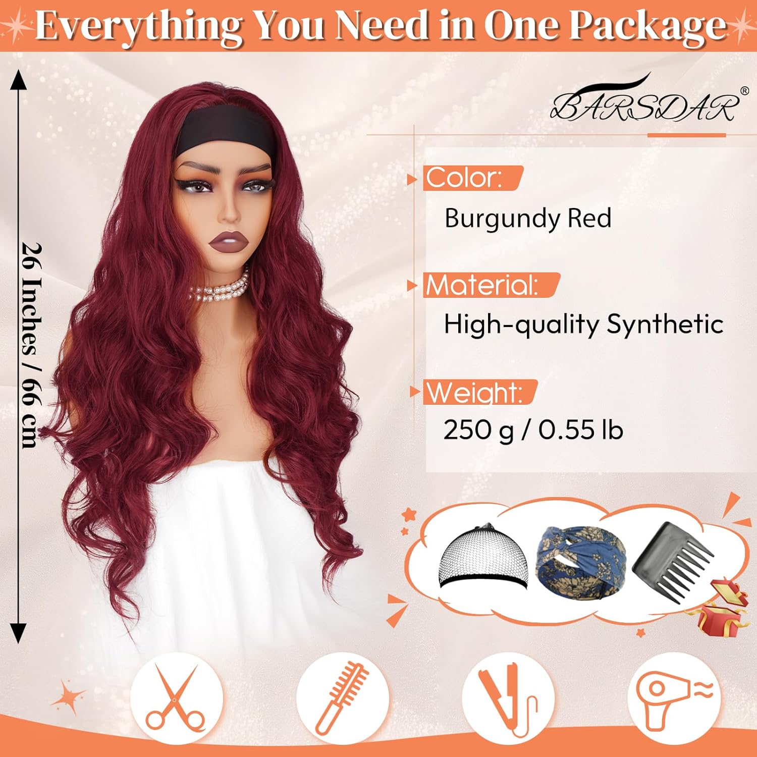 Fraud Blocker BARSDAR Long Wavy Headband Wig – 26 Inch Burgundy Red Loose Body Wave Headband Wig for Black Women – Synthetic Wear and Go Glueless Wigs Soft Lightweight Natural Looking Easy Wear Wigs | Wigsretail44.com