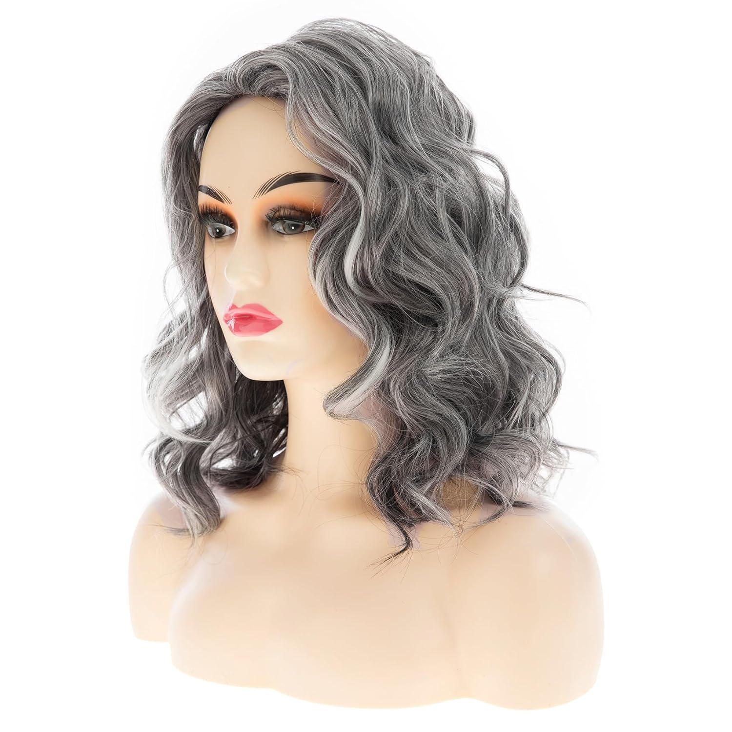 - Name: Medium Long Curly Wavy Grey Wigs for Women/Female