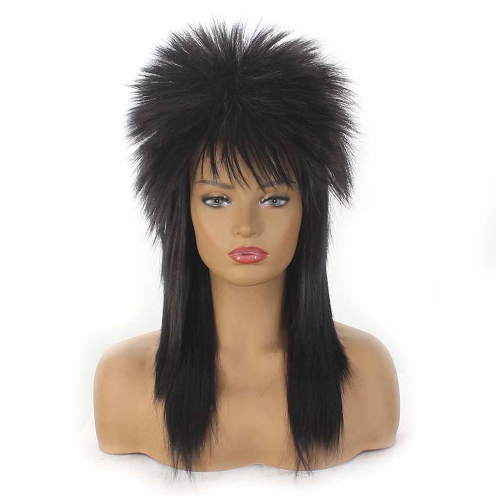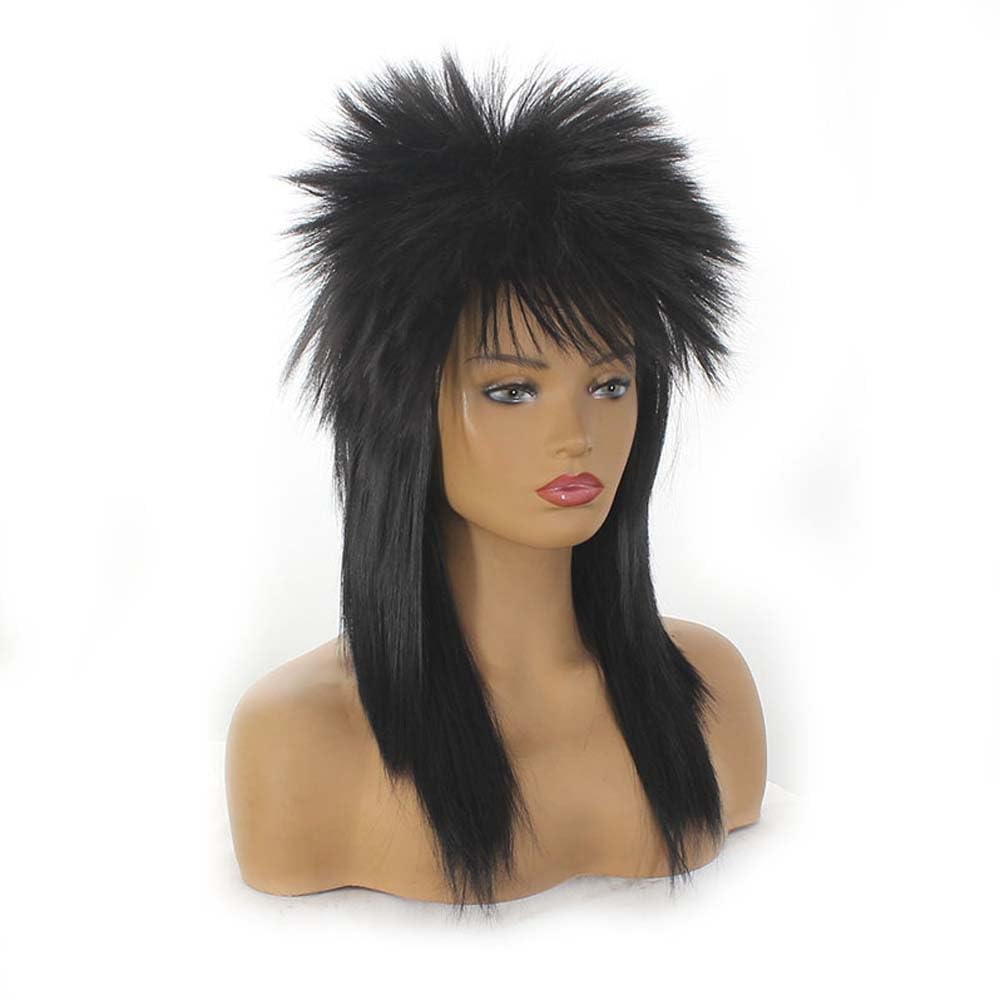 Fraud Blocker Black Long Curly Wig 70s 80s Wig Punk Men and Women Wigs Rock and Roll Party Costume Curly Hair Role-playing wig | Wigsretail44.com