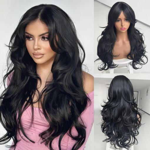 Are you looking to elevate your style with a new hairstyle? Look no further than the Long Black Layered Wig for Black Women. This multi-layer synthetic fiber wig is designed to bring unparalleled volume and three-dimensionality to your look. With its long butterfly wavy texture and curtain bangs, this wig is perfect for women who want a charming and low-key hairstyle.