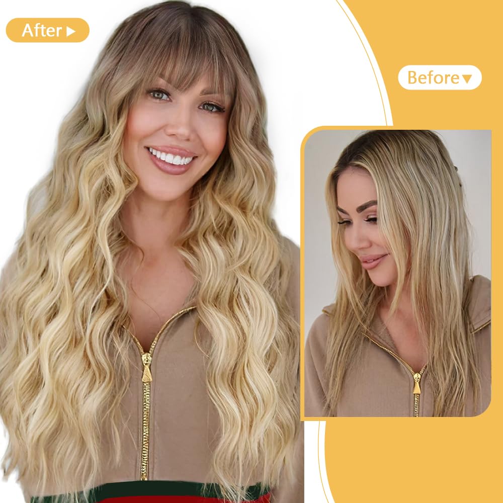 If you’re looking to elevate your style with a stunning new look, the Long Wavy Blonde Wig with Bangs from UNNYMGER is the perfect choice. This high-quality synthetic wig is designed to give you a natural and glamorous appearance, whether you’re heading to work, a special event, or a fun night out.