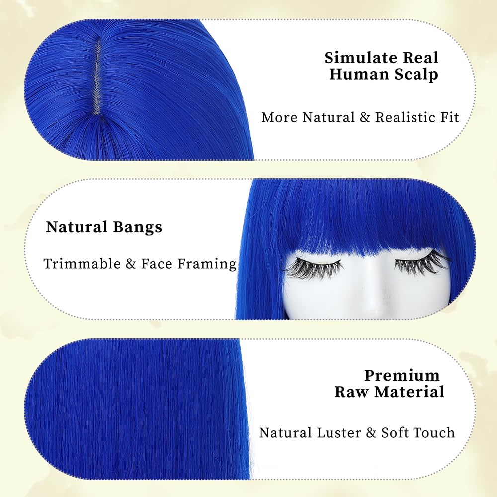 The wig’s straight bob style with bangs is a timeless choice, making it perfect for both everyday wear and special occasions. The adjustable straps and breathable rose net ensure a comfortable fit, allowing you to wear it for extended periods without discomfort.