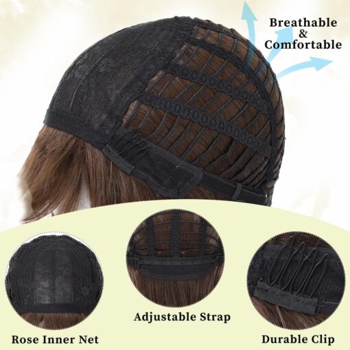 The wig’s straight bob style with bangs is a timeless choice, making it perfect for both everyday wear and special occasions. The adjustable straps and breathable rose net ensure a comfortable fit, allowing you to wear it for extended periods without discomfort.