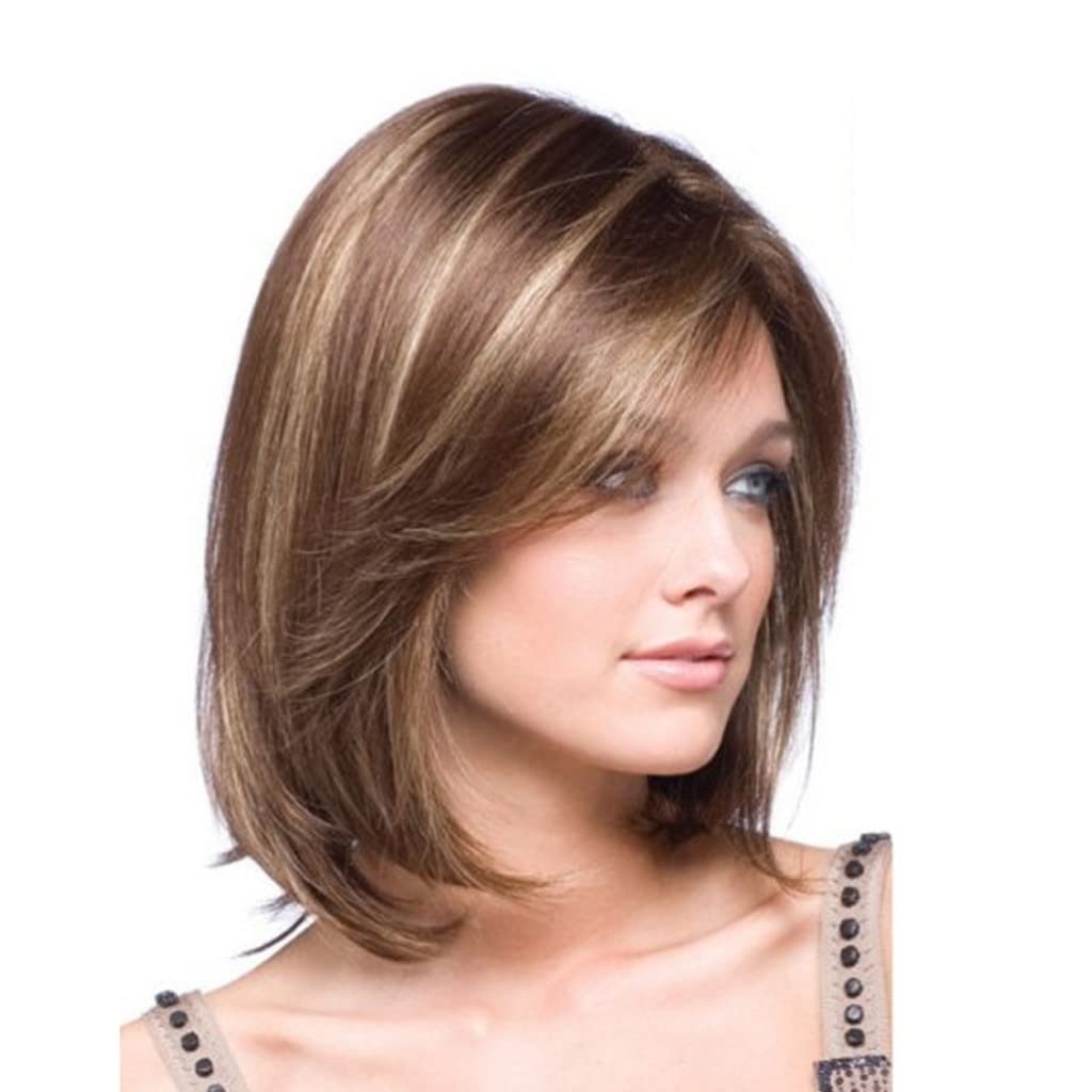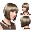 Fraud Blocker Brown Short Wigs Short Straight Bob Wig With Bangs Brown Mix Blonde Synthetic Hair Wigs For White Black Women Natural Heat Resistant Fibre Wigs Adjustable(Brown Blonde,Hairnet) | Wigsretail44.com