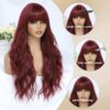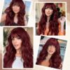 Achieve a stunning and feminine look with the Burgundy Wavy Wig for Women from MINSEEYOO. This long wig with bangs is perfect for adding a touch of glamour to your everyday style or for special occasions like Halloween, weddings, and parties. Made with premium heat-resistant synthetic fiber, this wig offers a natural look and comfortable fit.