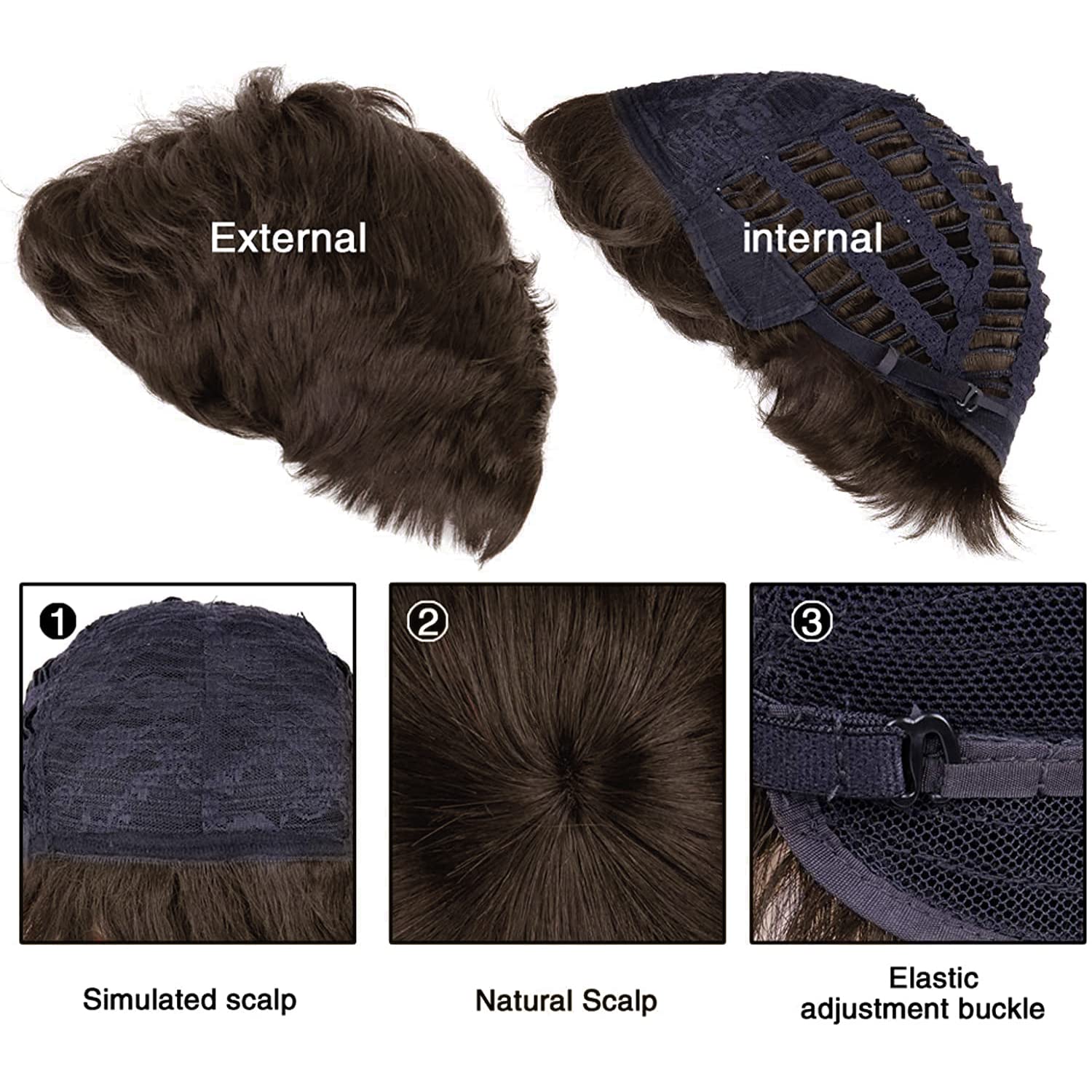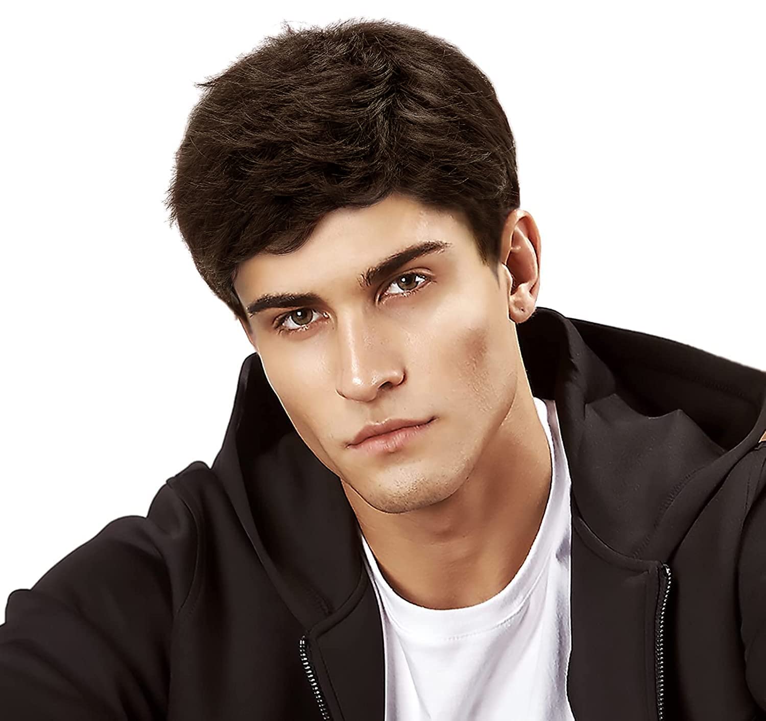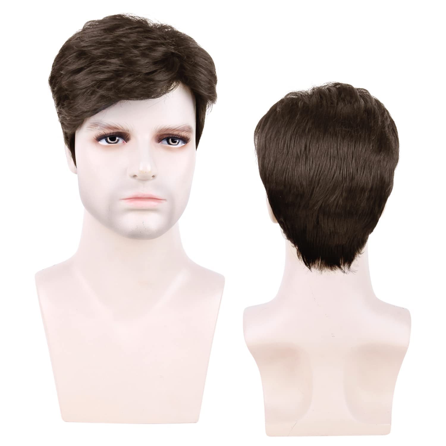 Fraud Blocker Creamily Mens Short Brown Wig Mens Curly Wigs Layered Natural Fluffy Synthetic Heat Resistant Halloween Costume Cosplay Wig for Men Hair Replacement Wigs Daily | Wigsretail44.com