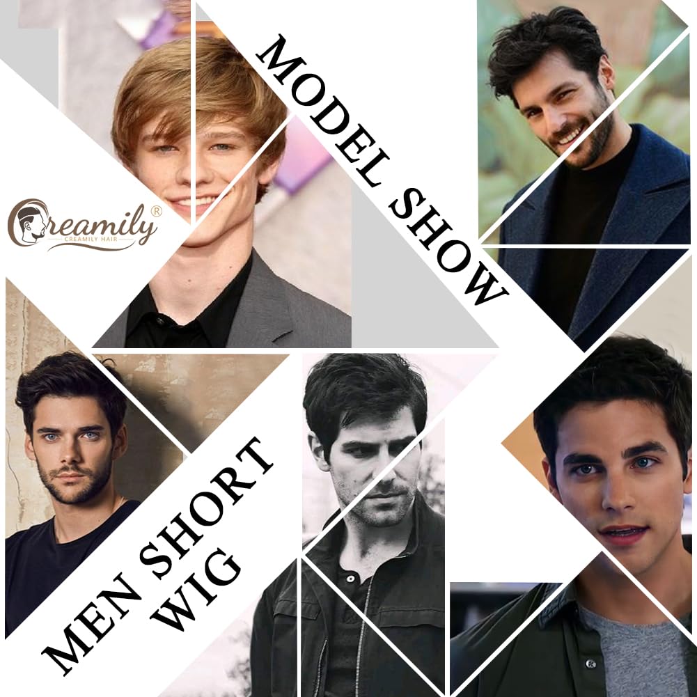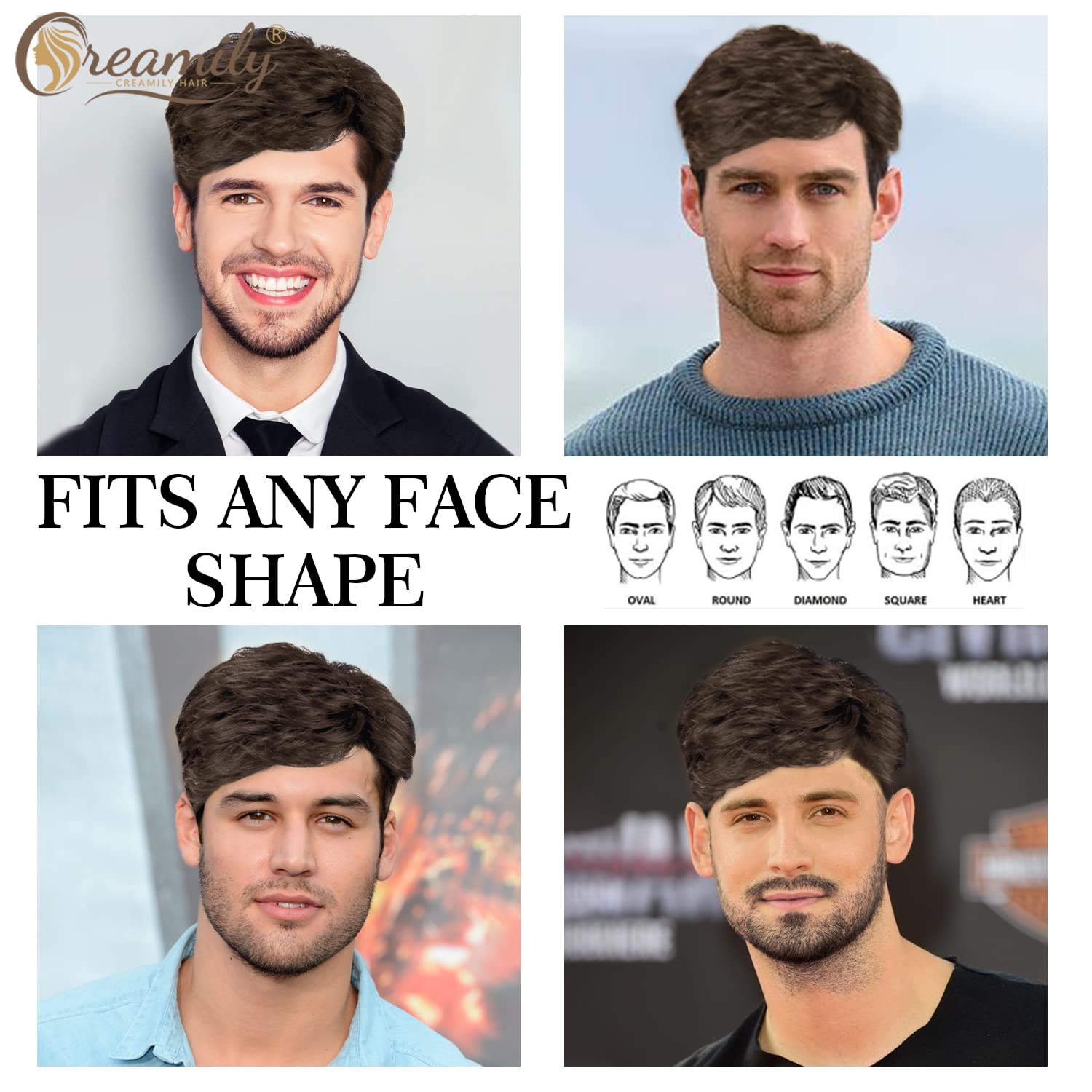 Creamily Mens Short Brown Wig Mens Curly Wigs Layered Natural Fluffy Synthetic Heat Resistant Halloween Costume Cosplay Wig for Men Hair Replacement Wigs Daily