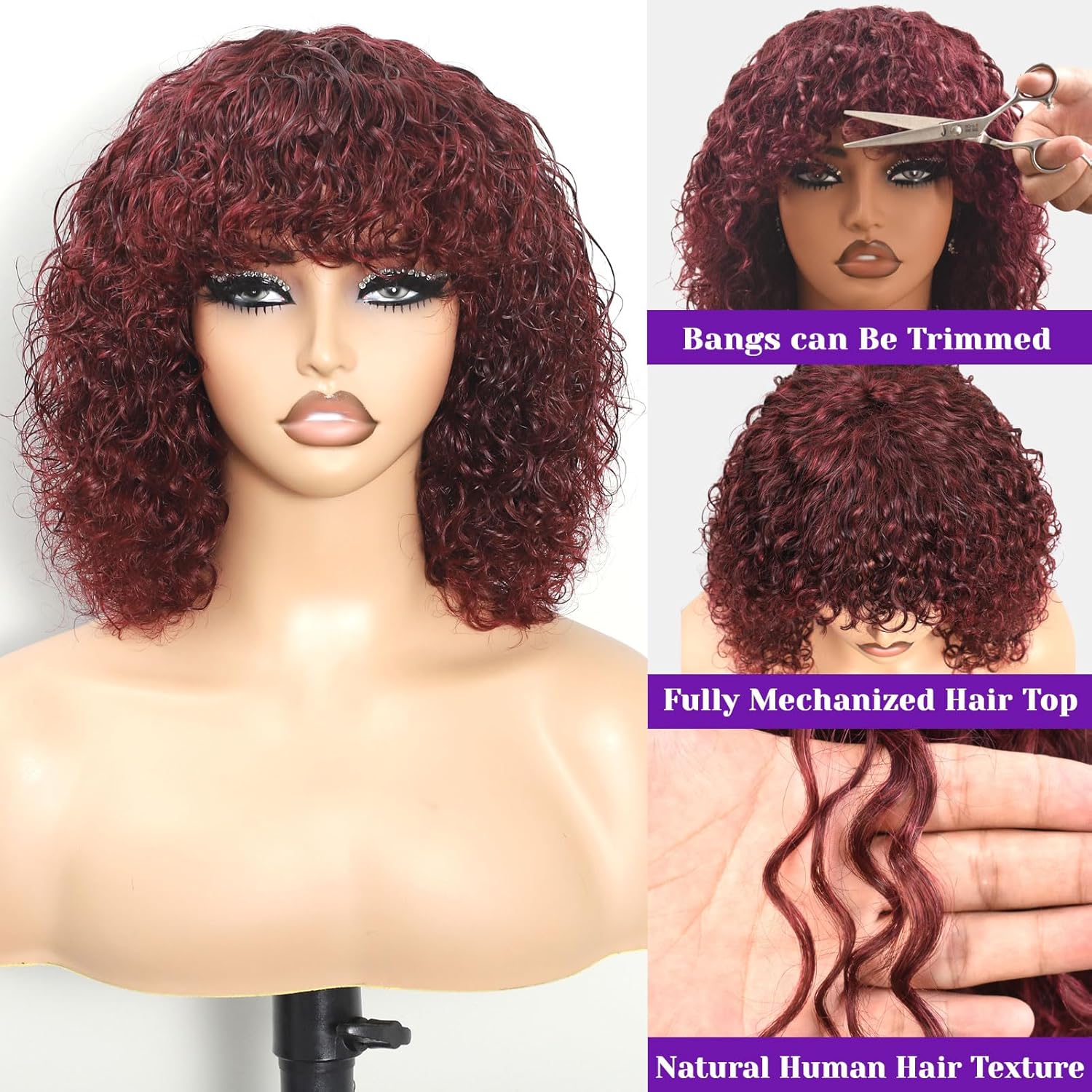 – Wig Style: Short curly bob with bangs