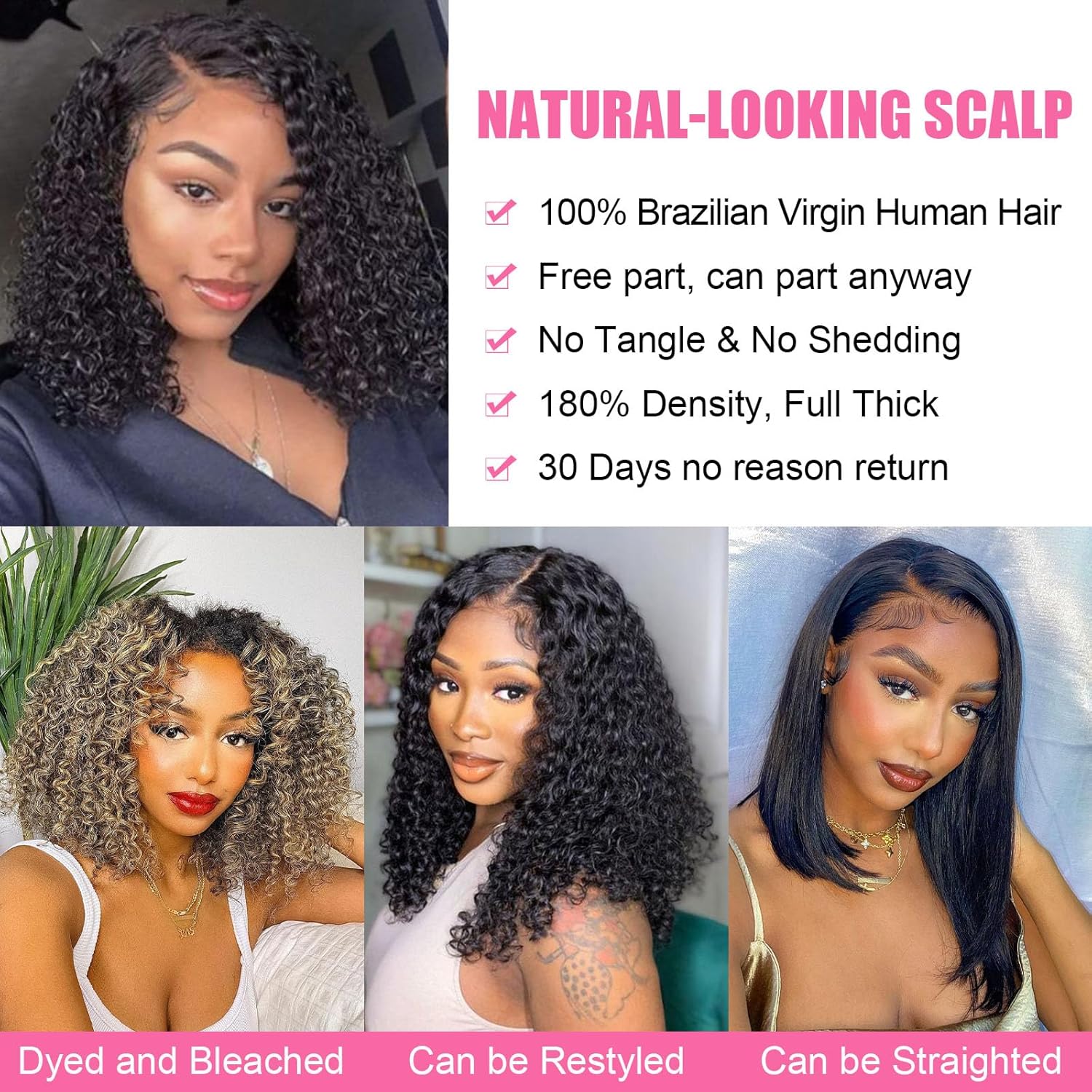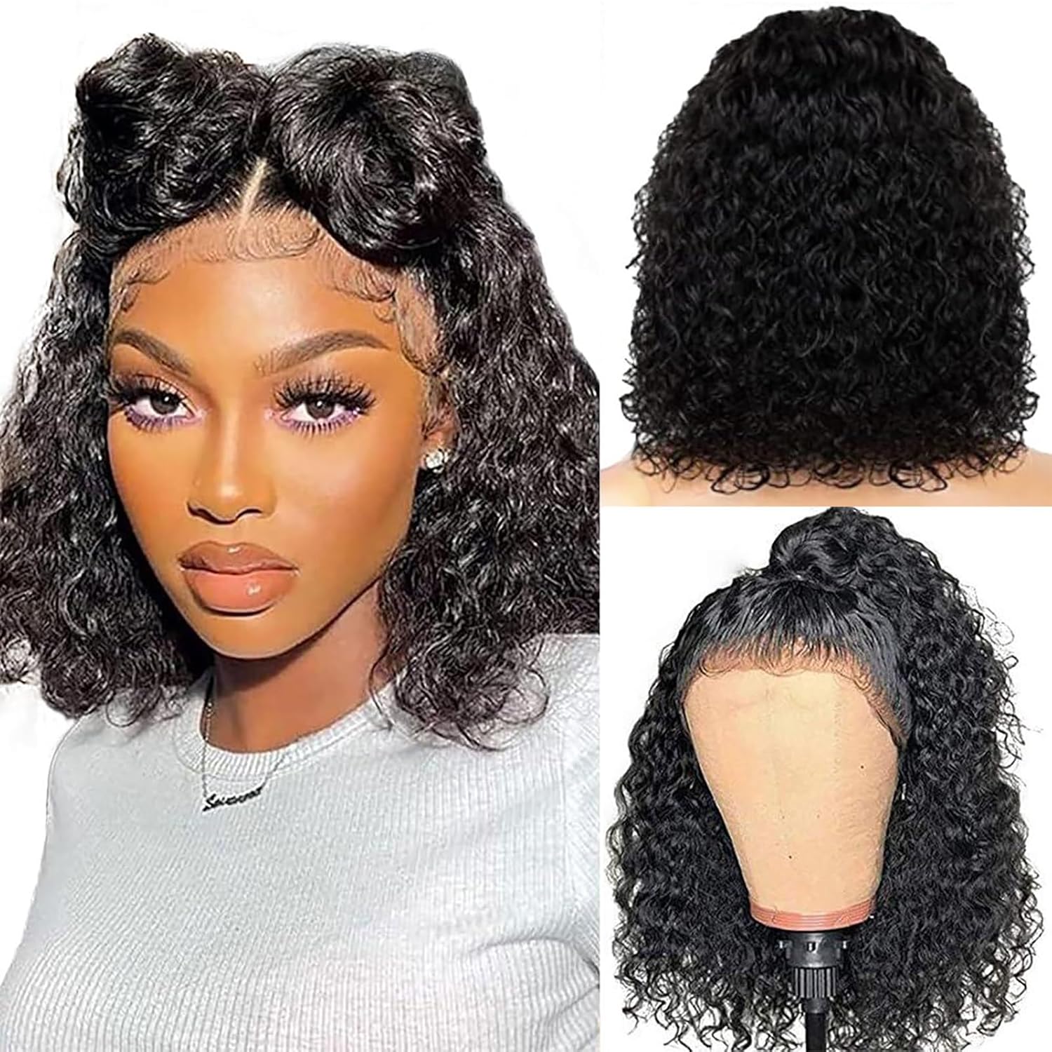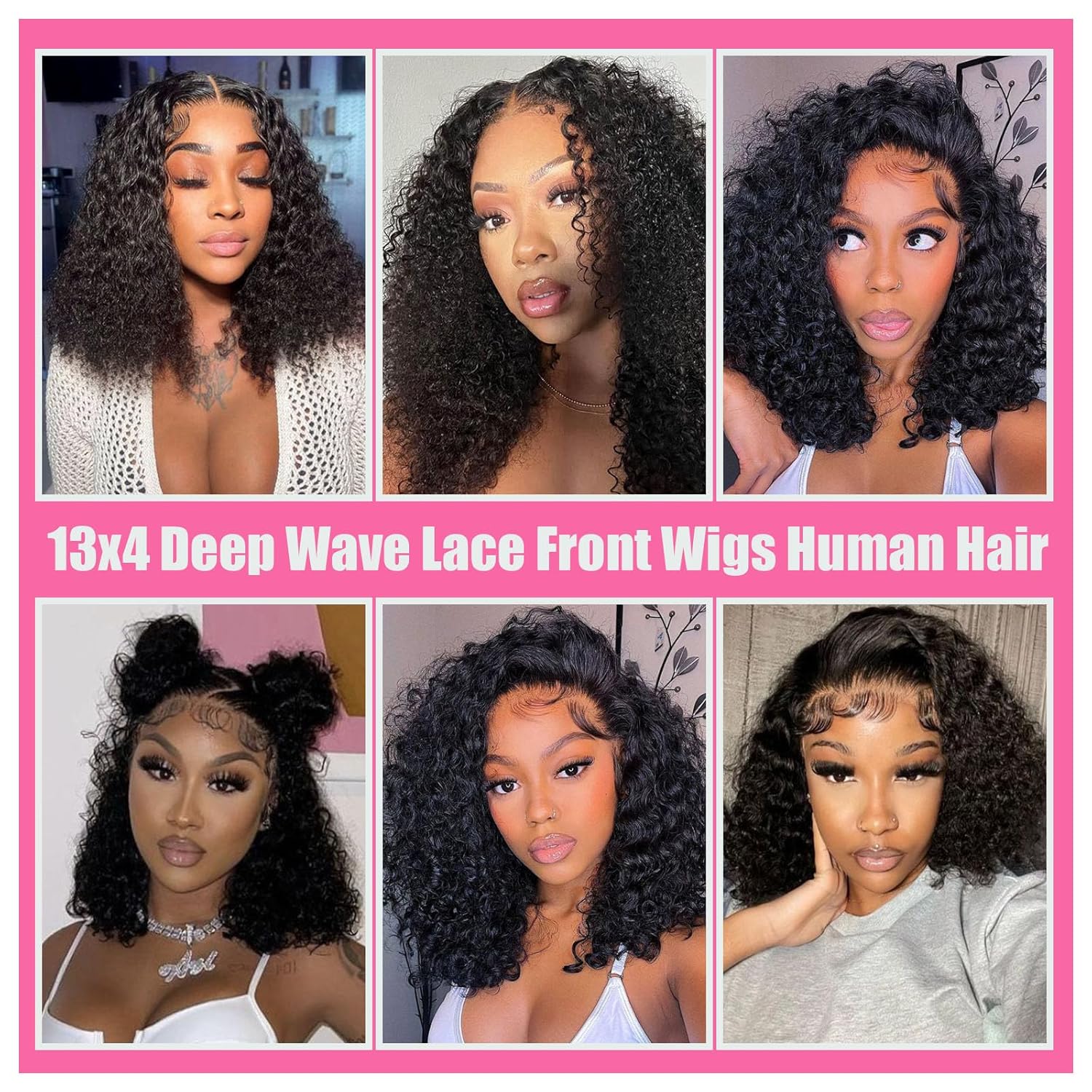Deep Wave Bob Wig Human Hair 12 Inch 13×4 Lace Front Bob Wigs Human Hair Pre Plucked 180 Density HD Transparent Lace Front Human Hair Wigs for Black Women Natural Black