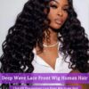 Deep Wave Lace Front Wig 13×6 Soft Remy Virgin Human Hair 180% Density HD Lace Frontal Wigs for Black Women Natural Color Pre Plucked Hairline