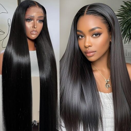Fraud Blocker Dilraba 30 Inch Human Hair Wig 13×6 Lace Front Wigs Human Hair 200 Density HD Transparent Straight Lace Front Wigs Human Hair Pre Plucked Glueless Lace Frontal Wigs Natural Black Color | Wigsretail44.com