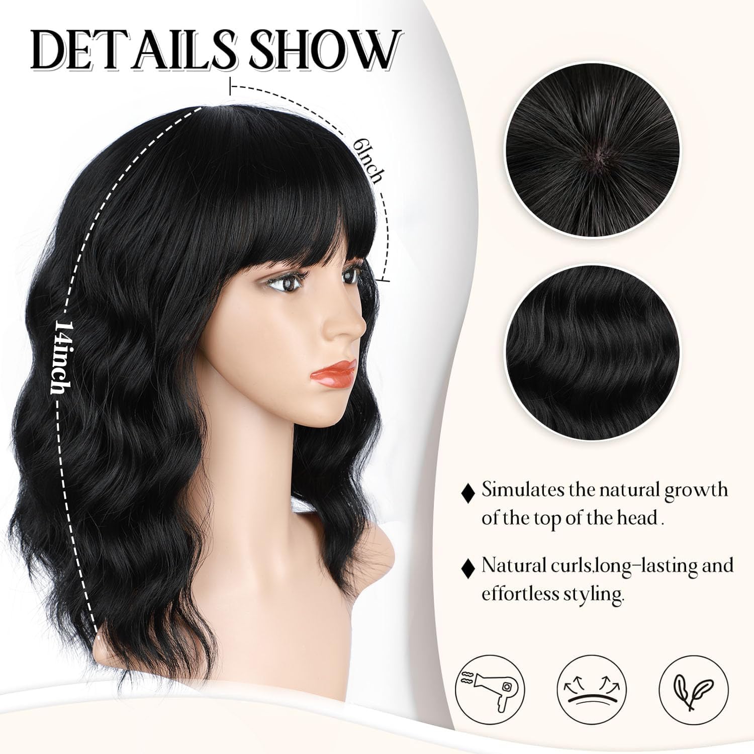 The Short Bob Wig from ENTRANCED STYLES is a game-changer for anyone looking to elevate their style effortlessly. The deep black color and wavy texture create a sophisticated and versatile look that suits any occasion. The elastic mesh design ensures breathability and comfort, while the adjustable straps and secure clips provide a perfect and secure fit.This wig is easy to style and maintain, making it a convenient and practical choice for everyday wear. The realistic bangs beautifully frame the face and offer endless styling possibilities, allowing you to experiment with different looks and expressions. Overall, this wig offers great value for money, combining quality, style, and comfort in one package.