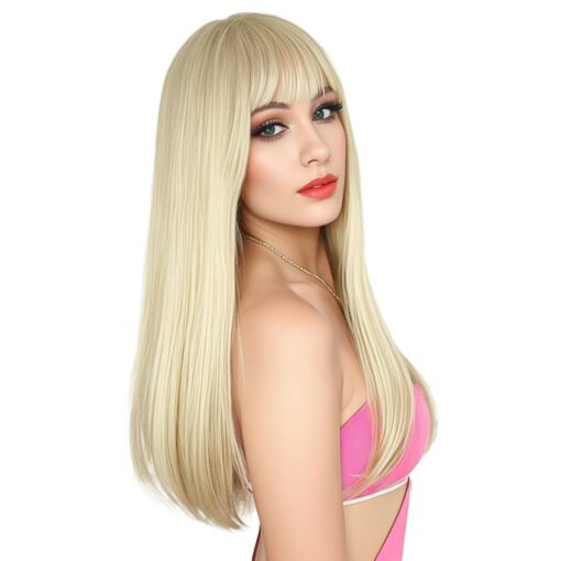 Fraud Blocker ENTRANCED STYLES Blonde Wig with Bangs, Long Straight Wigs for Women Natural Hair Wigs Synthetic Blond Wigs for Girls Daily Party Halloween Cosplay Wig 22 Inch | Wigsretail44.com