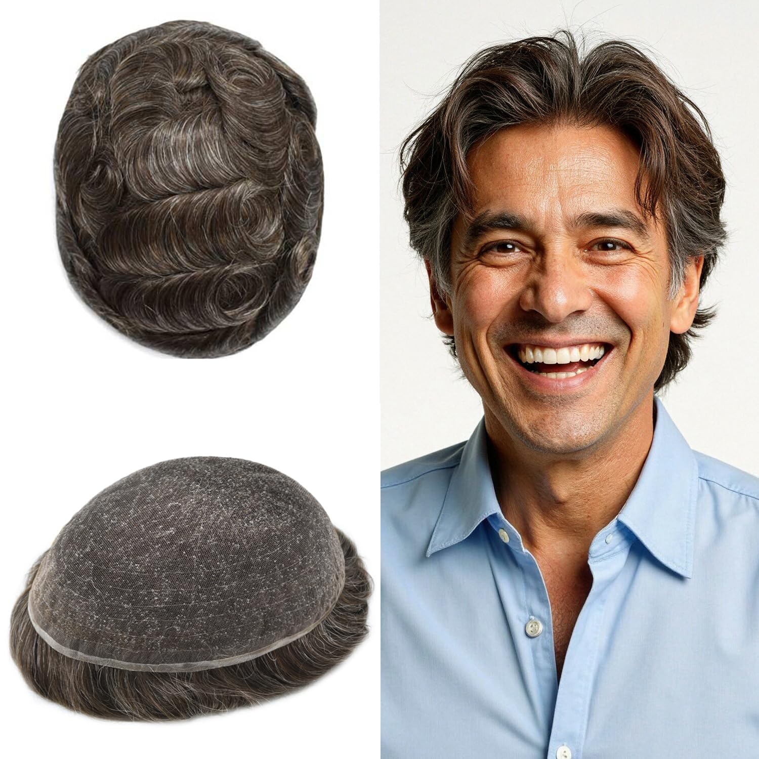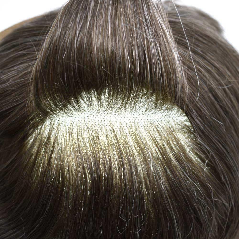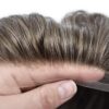 Fraud Blocker Full Swiss Lace Toupee For Men Hair Piece Real Human Hair Replacement System Mens Toupee Hair System For Men Bleached Knot 8×10 100% light to medium density#320 3# DARK BROWN+20% GREY | Wigsretail44.com