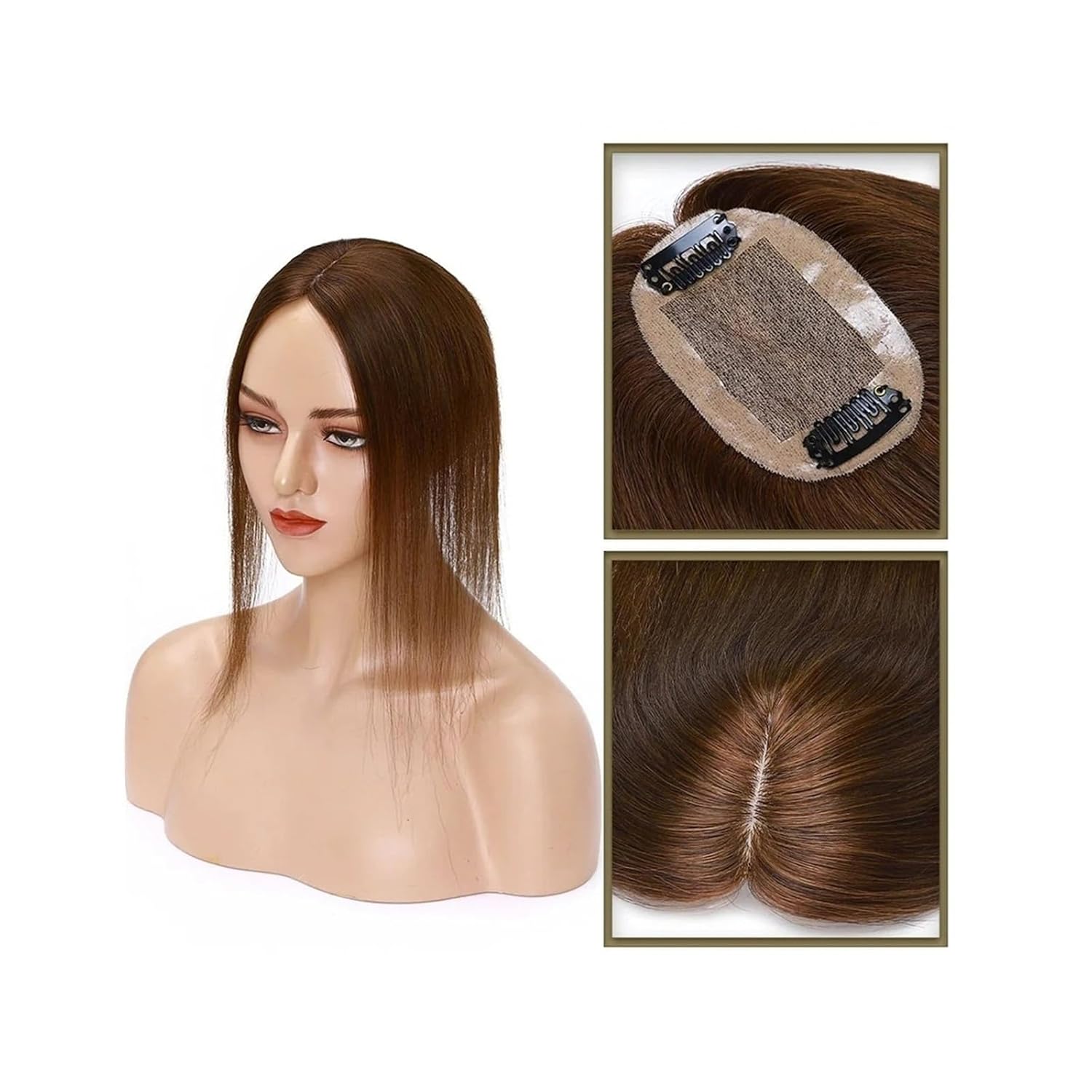 Are you looking for a hairpiece that seamlessly blends with your own hair, giving you a natural and confident look? Look no further than the Straight Human Hair Topper with Silk Base. This top-quality hair topper is made with real Indian hair and features a silk base with clips for easy and secure attachment.