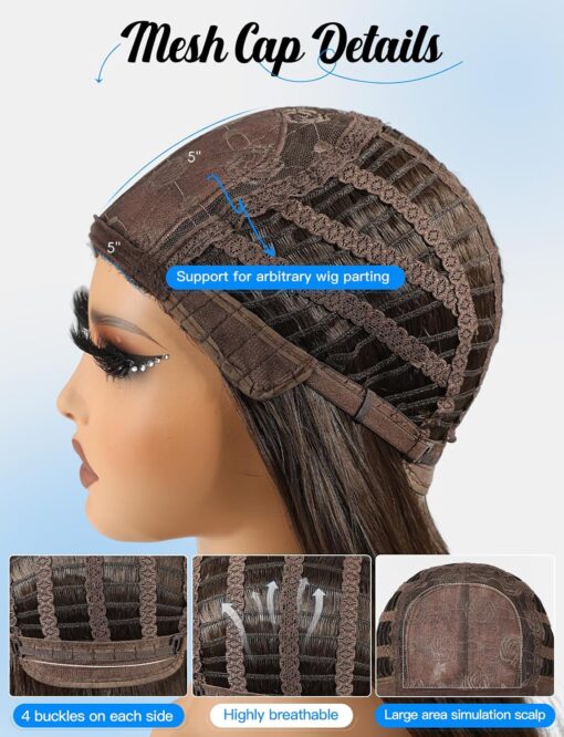 – Adjustable breathable wig cap (21″-23″ average size)