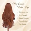 Haloo Auburn Wigs with Bangs – Long Layered Natural Looking Synthetic Heat Resistant Wavy Hair Wigs for Women Daily Party, 26 Inch