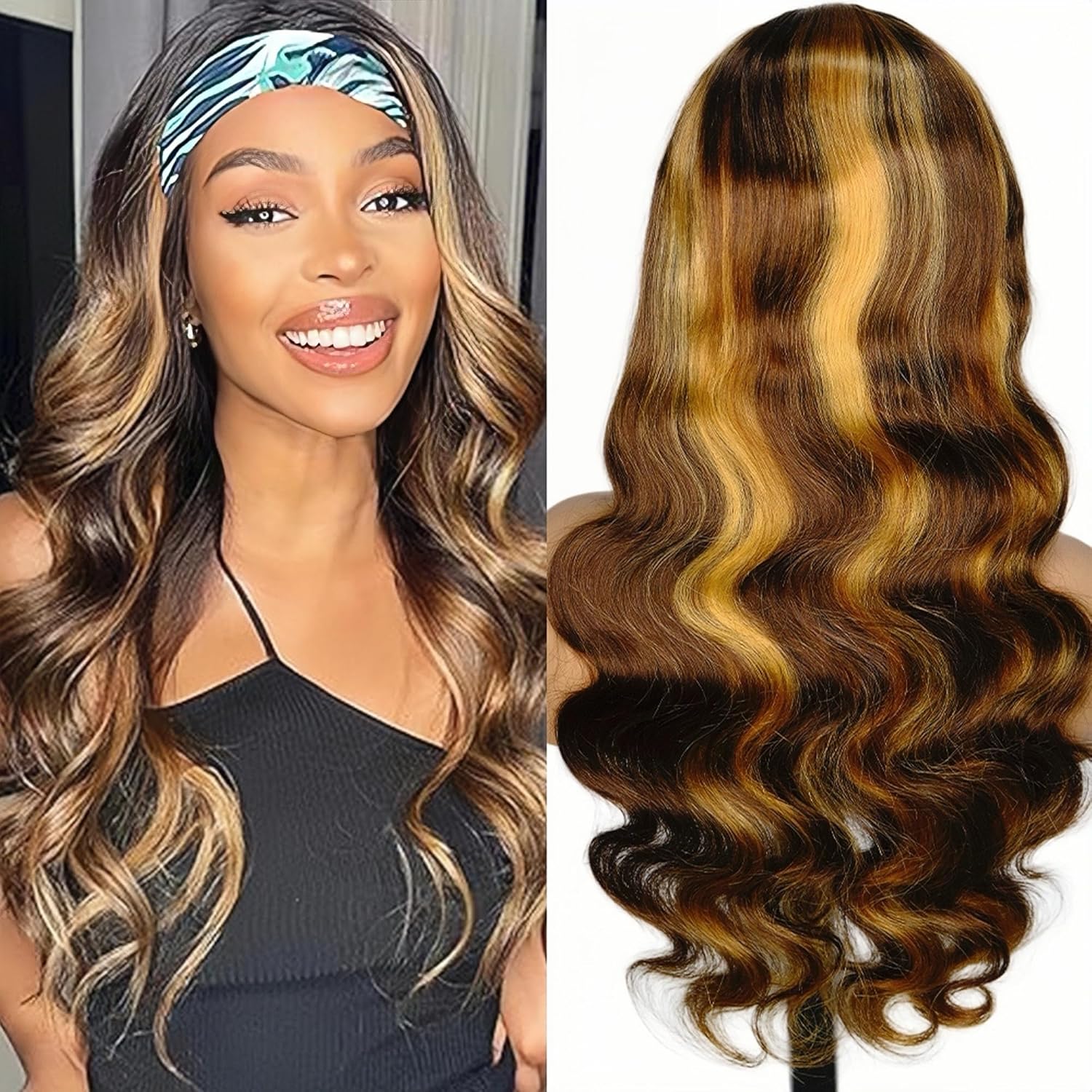 - Design: Body wave human hair wig with stretchy headband