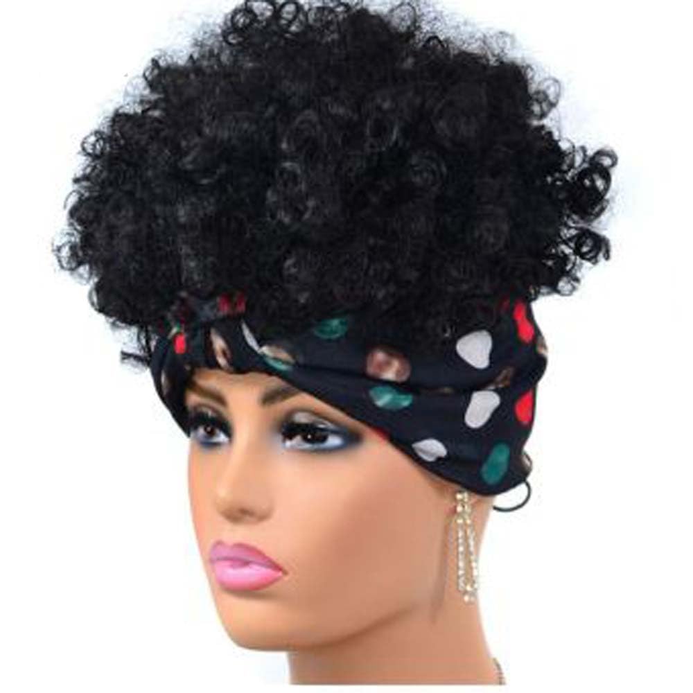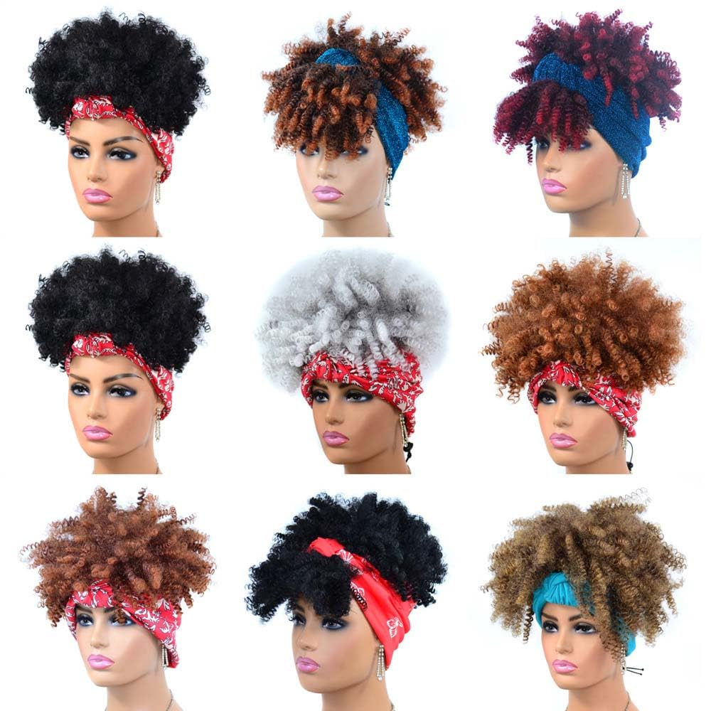 Fraud Blocker Headband Wigs for Black Women Synthetic Short Afro Kinky Curly Wigs Dark Brown Wig with Bangs Wrap Wigs Afro Curly Headband Wig | Wigsretail44.com