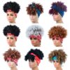 Headband Wigs for Black Women Synthetic Short Afro Kinky Curly Wigs Dark Brown Wig with Bangs Wrap Wigs Afro Curly Headband Wig