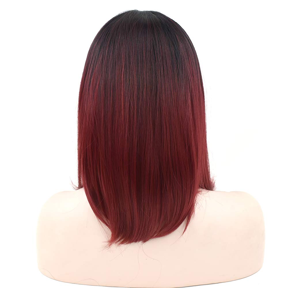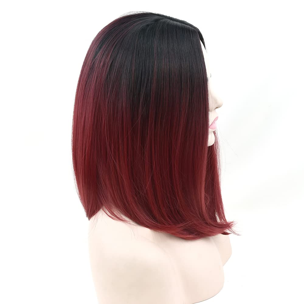 IMISSU Short Natural Hair Wigs Cosplay Wig Ombre Color Halloween Costume Party Wigs for Women (Black to Burgundy)