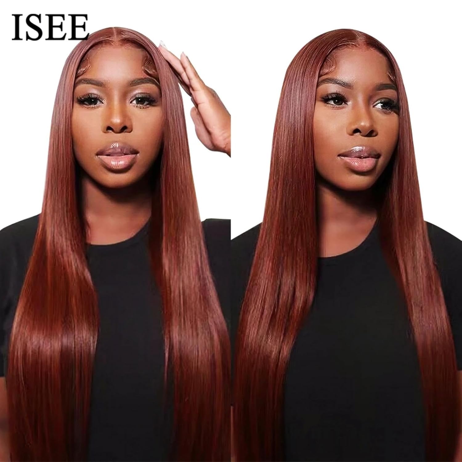 Fraud Blocker ISEE Glueless Wigs Human Hair Pre Plucked Pre Cut Straight Reddish Brown Colored Lace Front Wig Human Hair 6×4 HD Lace Closure Wigs Human Hair Wigs for Women 180% Density 26 Inch | Wigsretail44.com