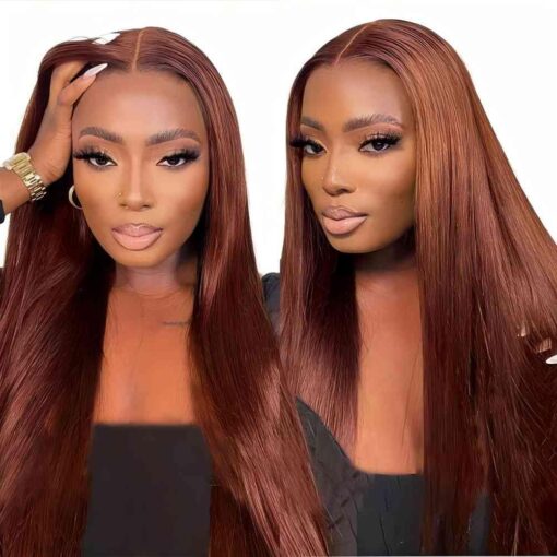 Fraud Blocker ISEE Glueless Wigs Human Hair Pre Plucked Pre Cut Straight Reddish Brown Colored Lace Front Wig Human Hair 6×4 HD Lace Closure Wigs Human Hair Wigs for Women 180% Density 26 Inch | Wigsretail44.com